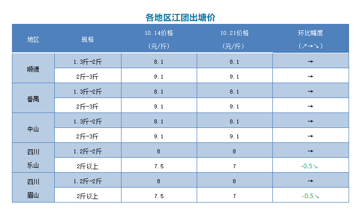 1、本周廣東江團總體情況沒有太大改變,價格與上周持平。小魚還是8.1元/斤,中魚還是9.1元/斤,目前市場銷量不大,存塘量還是挺多,銷量沒有什么變化,價格持穩。預計廣東江團接下來的價格和銷量要下個月才會有變化。