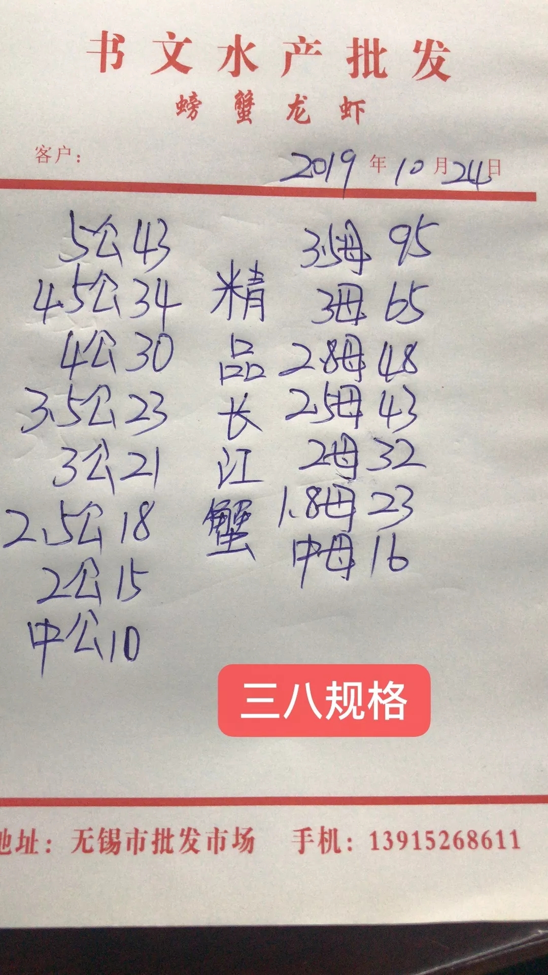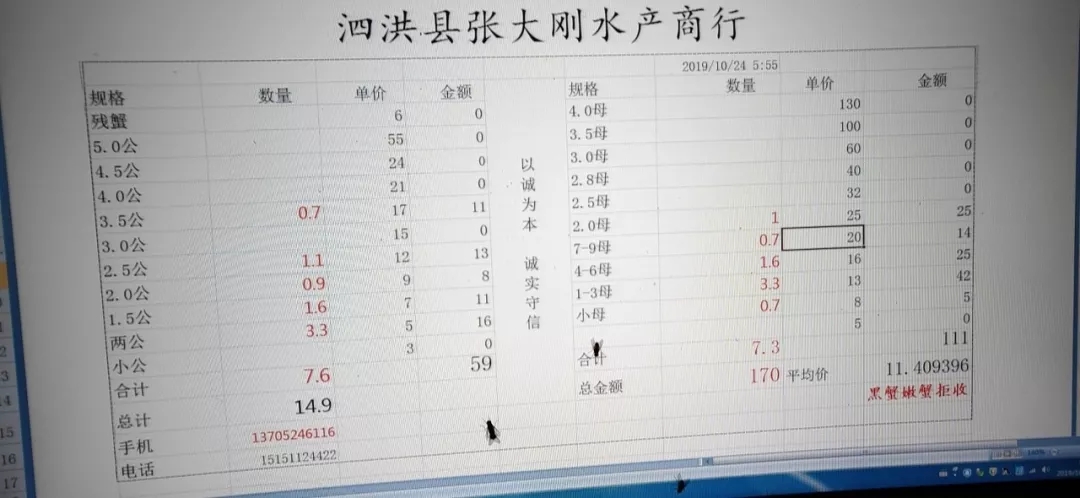| 中國水產頻道原創報道, 高淳母蟹整體上漲! 蝦蟹行情每日播報 您身邊的行情顧問 歡迎關注蝦蟹前沿公眾號! 最新行情解析 高淳 近期高淳精品蟹價先降后升,昨天達到最低平均蟹價,今天較昨天小幅上漲,目前平均蟹價為56.9元/斤。與去年同期相比,目前蟹價仍舊偏低。 今天高淳精品門市母蟹整體上漲,3.5母漲5元/斤,3母、2.8母、2.5母均漲2元/斤,2母漲1元/斤。公蟹方面,各規格蟹價基本未變。 今日參考價 高淳 此報價由江蘇好潤固城湖店劉坤提供 此報價由江蘇好潤固城湖店劉坤提供 泗洪 此報價由泗洪孫老板提供 此報價由江蘇好潤臨淮店賈明先提供 無錫 此報價由無錫王老板提供 馬鞍山 此報價由江蘇好潤塘南店張悅提供 宣城 此報價由宣城劉老板提供 |