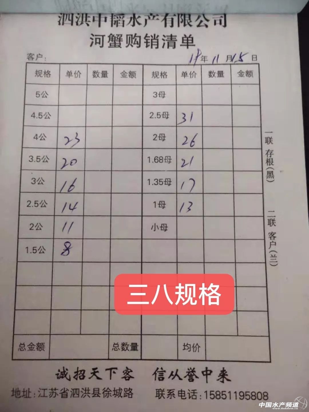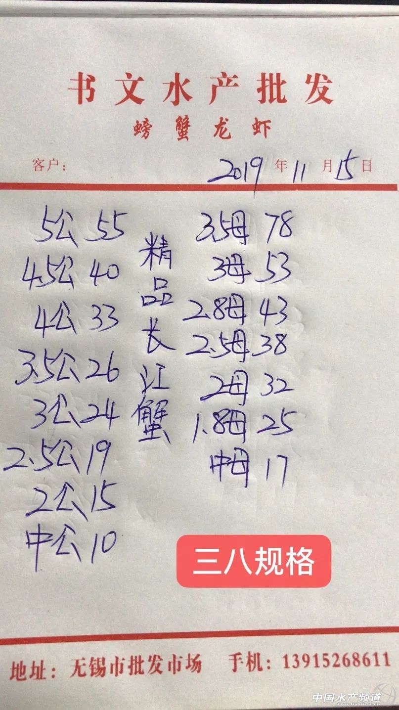 | 中國水產(chǎn)頻道原創(chuàng)報(bào)道, 興化蟹價平穩(wěn)。 蝦蟹行情每日播報(bào) 您身邊的行情顧問 歡迎關(guān)注蝦蟹前沿公眾號! 最新行情解析 高淳 近期高淳精品蟹價呈下跌趨勢,昨天蟹價稍有上漲,今天卻大幅下跌。與去年同期相比,目前蟹價明顯偏低。 今天高淳精品門市跌價較多。公蟹方面,4.5公、4公、3.5公均跌2元/斤,3公跌1元/斤。母蟹方面,4母從110元/斤跌回100元/斤,3.5母、3母、2.8母均跌5元/斤;2.5母跌2元/斤,僅2母漲1元/斤。 興化 近期興化精挑蟹價穩(wěn)中有降,自12日小跌之后,近4天蟹價保持平穩(wěn),精挑蟹價基本未變。同時,今天興化市場指導(dǎo)價普挑、普貨價格依舊平穩(wěn)。 今日參考價 興化 高淳 此報(bào)價由江蘇好潤固城湖店劉坤提供 泗洪 此報(bào)價由泗洪孫老板提供 金壇 此報(bào)價由常州楊老板提供 無錫 此報(bào)價由無錫王老板提供 宣城 此報(bào)價由宣城劉老板提供 |