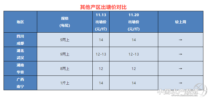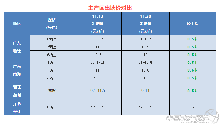 | 中國水產(chǎn)頻道原創(chuàng)報道, 各產(chǎn)區(qū)加州鱸最新塘頭報價與行情一周簡析 文/圖 杰大飼料 水產(chǎn)前沿 李曉欣 聯(lián)合發(fā)布 隨著天氣逐漸轉(zhuǎn)冷,全國加州鱸流通速度加快,本周大部分產(chǎn)區(qū)加州鱸塘頭價以企穩(wěn)為主,廣東、浙江微跌0.5元/斤。 目前佛山8兩上新魚報價11-11.5元/斤左右,比去年同期價格10-10.5元/斤高出了1元/斤,目前位價與預(yù)期有差別,已經(jīng)出了前兩箍魚的養(yǎng)殖戶惜售心理增強,想養(yǎng)大規(guī)格提高產(chǎn)量。據(jù)一線養(yǎng)殖戶及業(yè)務(wù)員反饋,近期很多產(chǎn)區(qū)塘口加州鱸出現(xiàn)爛身現(xiàn)象,嚴(yán)重時只能清塘,建議養(yǎng)殖戶多加防控,降低養(yǎng)殖風(fēng)險。 今日各地加州鱸塘頭價及本周行情分析 廣東順徳:今天報價6兩上10元/斤,7兩上10.5元/斤左右,8兩上11-11.5元/斤左右,各規(guī)格相比上周下跌了0.5元/斤,實際塘頭價根據(jù)魚頭大小有所浮動。本周受冷空氣影響,外省魚車銷量有所增加,養(yǎng)殖戶仍然以出大規(guī)格魚為主,從而提高產(chǎn)量,但養(yǎng)殖戶出魚積極性一般。 廣東南海:今天6兩上報價10元/斤,7兩上10.5元/斤左右,8兩上11-11.5元/斤,實際成交價看魚大小及規(guī)格有所浮動。本周出魚的養(yǎng)殖戶比上周有所減少,目前魚價部分養(yǎng)殖戶并不著急出魚,惜售心理明顯增強。本周開始有入3-7兩規(guī)格魚的養(yǎng)殖戶,但數(shù)量不多,今年賣3-7兩規(guī)格的養(yǎng)殖戶很少。 浙江湖州:今天湖州統(tǒng)貨報價9-11元/斤左右,比上周魚價跌了0.5元/斤,具體價格看炮頭大小和規(guī)格成次而定,湖州養(yǎng)戶出魚積極性較高,本地新魚上市量大。 江蘇吳江:吳江8兩上新魚報價12.5-13元/斤左右,魚價一周持平。由于當(dāng)?shù)亓?xí)慣養(yǎng)老口魚,本地出魚量很少,以出標(biāo)魚為主,少數(shù)塘口發(fā)病統(tǒng)貨清塘。 四川成都:今天9兩上報價14元/斤,魚價與上周持穩(wěn)。本周養(yǎng)殖戶出魚積極性還是比較大,大家希望冷空氣來之前出一網(wǎng)魚。隨著冷空氣來臨,溫度逐漸下降,預(yù)計本地出魚的養(yǎng)殖戶會有所減少。 湖北武漢:本周武漢魚價一周持穩(wěn),9兩上報價12-13元/斤,武漢本地達上市規(guī)格的不多,整體上市量不大,市場以廣東魚為主。部分塘口暴發(fā)爛身現(xiàn)象,提醒養(yǎng)戶加強防范。 湖南華容:今天華容8兩上鱸魚報價12元/斤,與上周價格持平。目前價格當(dāng)?shù)仞B(yǎng)戶出魚積極性不高,當(dāng)?shù)匦卖~走量不大,預(yù)計要到明年4月才迎來新魚的上市高峰。 廣西南寧:本周南寧1斤上加州鱸塘頭價維持在14元/斤左右,當(dāng)?shù)剡_上市規(guī)格的魚不多,部分養(yǎng)戶想趕在越冬前出魚,以減少損耗,總體走量不大。 |