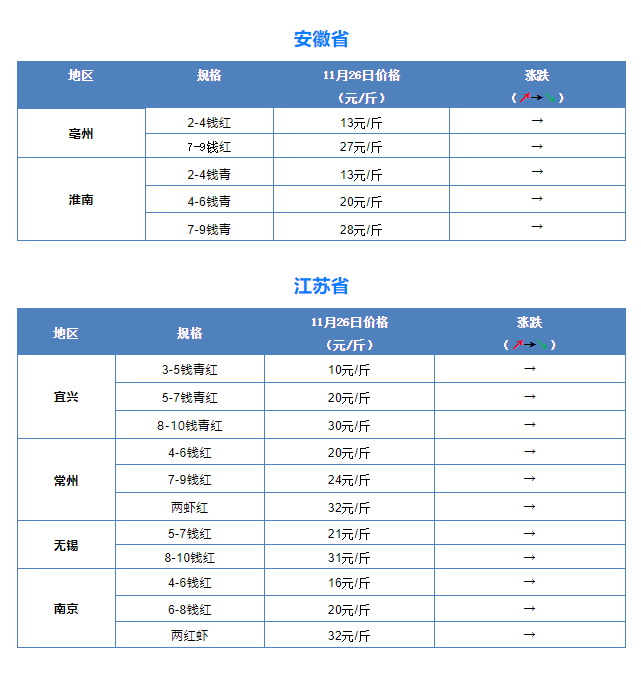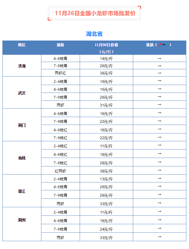11月26日全國小龍蝦市場批發價