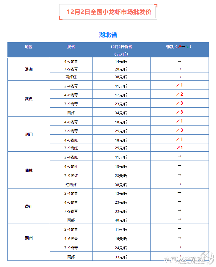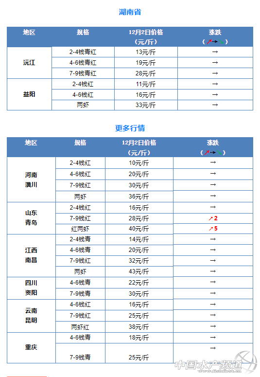 摘要: 中國水產頻道報道,12月2日全國小龍蝦市場批發價 。