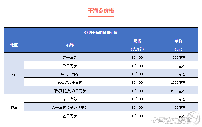 | 中國水產(chǎn)頻道原創(chuàng)報道, 文/ 水產(chǎn)前沿實習編輯 賀志義 一周行情 對于今年海參手撿苗的整體行情,總體來說,今年前期選擇觀望的養(yǎng)殖戶較多,前期價格稍低,但是抓苗量較少。但是隨著冷空氣的來襲,海參回礁抓苗難度增加,海參縮水,然后苗價連續(xù)上漲,抓苗量反而隨之上漲,甚至抓了一些低質(zhì)量的苗種。到底今年苗價低還是高?一切的謎底都將于明年4月份揭曉。 目前,各地海參手撿苗已經(jīng)結(jié)束或者即將結(jié)束,筆者將從本周開始提供部分成品海參的報價,同時現(xiàn)在也是海參消費的高峰期,價格僅供大家參考。通過持續(xù)的關(guān)注成品海參的價格,發(fā)現(xiàn)成品海參價格相對比較穩(wěn)定。 |