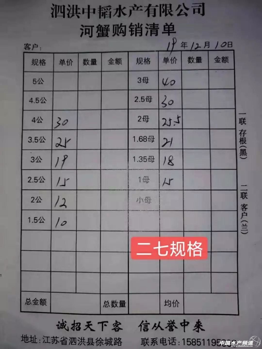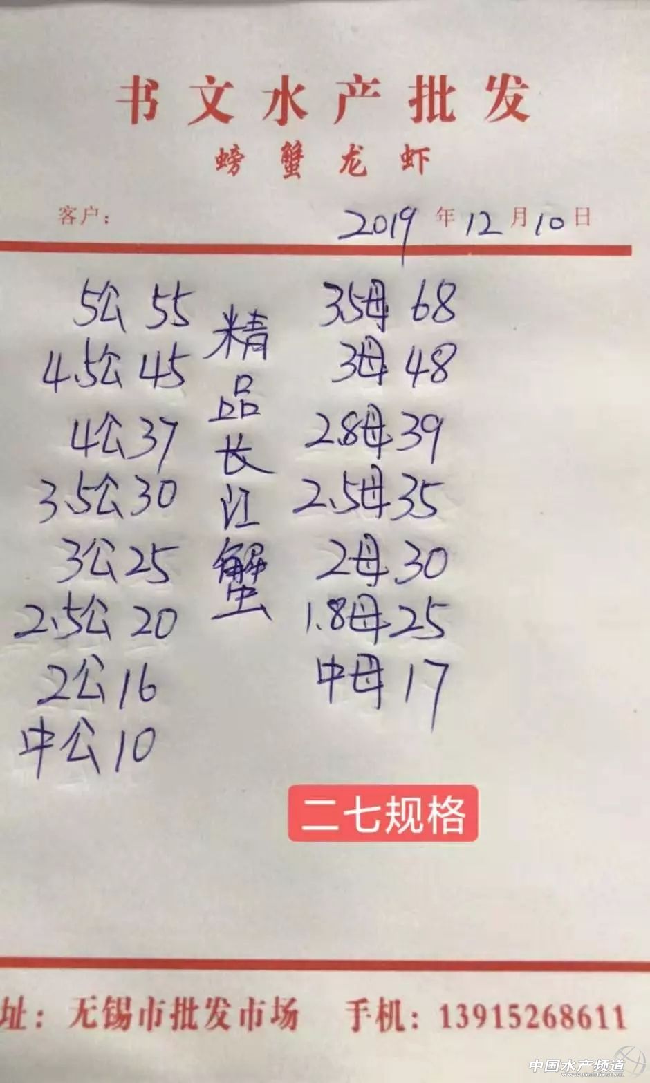 | 中國水產頻道原創報道, 最新河蟹行情解析 高淳 近期高淳精品蟹價整體呈下跌趨勢,近兩天蟹價保持平穩,今天各規格蟹價基本未變。與去年同期相比,目前蟹價明顯偏低。 興化 近期興化普蟹價格整體呈下跌趨勢,近3天蟹價連續小幅下跌。今天蟹價保持平穩,各規格蟹價基本未變。 今日河蟹參考價 興化 此報價由江蘇好潤馬家蕩店宋利坤提供 高淳 此報價由江蘇好潤固城湖店劉坤提供 泗洪 此報價由泗洪孫老板提供 無錫 此報價由無錫王老板提供 宣城 此報價由宣城劉老板提供 湖州 |