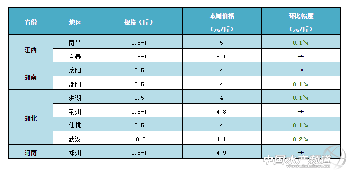 | 中國水產(chǎn)頻道原創(chuàng)報道, 冷空氣持續(xù)發(fā)威,加州鱸一周暴漲1元/斤,南美白最高漲6元/斤,斑節(jié)對蝦暴漲5元/斤!然而,多地鯽魚卻出現(xiàn)爛市,湖北最低賣到2元/斤,養(yǎng)殖戶賣魚賣到哭。這條魚年底還能漲嗎? 文/水產(chǎn)前沿 鄭鵬飛 一周要聞 重磅消息!據(jù)央視新聞,12月10日,華商儲備商品管理中心官網(wǎng)發(fā)布通知,公司將組織實施中央儲備凍豬肉投放工作,出庫投放競價交易4萬噸,每個企業(yè)交易成交數(shù)量不超過600噸,交易時間為2019年12月12日13時至16時。據(jù)上海消費者表示,昨天(12月11日)買肋排,價格是45元一斤,比以前便宜了,大概在一個月之前,價格是50多元一斤。據(jù)央視《焦點訪談》,河南萬邦國際農(nóng)產(chǎn)品物流城批發(fā)商表示,他們批發(fā)豬肉最貴的時候一斤30元,現(xiàn)在20元多一點。他們現(xiàn)在一天大概能賣十幾頭豬,而之前價格貴的時候只能賣兩三頭,現(xiàn)在慢慢恢復(fù)了。 豬肉暴漲時,沒有拉動大多數(shù)尤其是大宗家魚價格上漲,而現(xiàn)在,豬肉價格下跌了,淡水魚價格是否爛市?無奈真被說中了...... 從養(yǎng)殖戶了解到,今天(12月12日)凌晨,武漢白沙洲市場0.7-1.2斤的彭澤鯽和中科三號都只賣5元/斤左右,其它品種品相非常好的鯽魚才賣4-4.2元/斤,品相一般的只賣到2-3元/斤;3-6斤的草魚都只賣4.3元/斤;標(biāo)鱖賣22-23元/斤;黃顙魚只賣10-10.5元/斤;白鰱賣2.5元/斤;3斤以上的花鰱也只賣到4.5元/斤;10斤以上的青魚上只賣7-7.5元/斤。養(yǎng)殖戶表示,魚價連白菜價都不如,賣魚賣到哭。 同時,目前華南、華中、華東以及西南地區(qū)鯽魚最新塘頭價較上周仍然穩(wěn)中又跌。其中,廣東肇慶地區(qū)半斤以上的鯽魚最最新塘頭價賣6.3元/斤,下滑0.2元/斤;湖北隨州半斤的鯽魚塘頭賣4.3元/斤,下滑0.5元/斤;湖南長沙8兩的鯽魚塘頭價才賣4元/斤;江蘇地區(qū)鯽魚的走量還行,但目前塘頭價難漲,興化地區(qū)1斤以上的賣7.2元/斤,下滑0.3元/斤;四川成都半斤的鯽魚最新報價5.5元/斤,下滑0.1元/斤;廣元地區(qū)鯽魚最新塘頭價6.2元/斤,下滑0.3元/斤;有湖北養(yǎng)殖戶表示,年底干塘出魚比較多。 據(jù)了解,目前遼寧沈陽的最低氣溫只有-13℃。在冷空氣的作用下,目前北方地區(qū)的池塘大多已經(jīng)冰封,南下收魚的魚車也是逐漸增多,有多個品種的水產(chǎn)品行情已經(jīng)出現(xiàn)反彈。其中,佛山地區(qū)加州鱸一周最高暴漲1元/斤,如東地區(qū)南美白最高漲6元/斤,陽江、海南等地的斑節(jié)對蝦暴漲5元/斤,最近華中地區(qū)的大草魚行情也是開始走俏,價格有回暖的趨勢。接下來,鯽魚價格能漲嗎? 本周行情 華南地區(qū) 在冷空氣的作用下,目前北方地區(qū)的池塘大多已經(jīng)冰封,南下收魚的魚車也是逐漸增多,近期已經(jīng)有多個品種的水產(chǎn)品行情出現(xiàn)反彈,佛山地區(qū)加州鱸一周最高暴漲1元/斤,陽江、海南等地的斑節(jié)對蝦暴漲5元/斤。然而,近期鯽魚的行情卻依然持續(xù)下滑。據(jù)了解,目前珠三角地區(qū)的鯽魚最新塘頭價基本還是維持上周水平,局部地區(qū)仍然有所下滑。其中,廣東中山地區(qū)鯽魚行情還是老樣子,8兩的鯽魚塘頭價繼續(xù)維持在7.4元/斤左右;肇慶地區(qū)半斤以上的鯽魚最最新塘頭價賣6.3元/斤,較上周下滑0.2元/斤,養(yǎng)殖戶表示目前鯽魚行情還是沒有好轉(zhuǎn);目前,廣西桂林地區(qū)半斤以上的鯽魚塘頭價還是維持在5.5元/斤,鯽魚行情基本還是老樣子,近期沒有出現(xiàn)太大波動。 華中地區(qū) 由于年底華中地區(qū)干塘賣魚的比較多,近期魚價行情整體上還是低迷,多地鯽魚出現(xiàn)爛市。從養(yǎng)殖戶了解到,今天凌晨武漢白沙洲市場0.7-1.2斤的彭澤鯽和中科三號都只賣5元/斤左右,其它品種品相非常好的鯽魚才賣4-4.2元/斤,品相不好的只賣到2-3元/斤。同時還有多個品種出現(xiàn)爛市,養(yǎng)殖戶表示目前標(biāo)草無人問津,昨天4斤以上的草魚賣4.5元/斤,大一點的賣4.7元/斤,3-6斤的都只賣4.3元/斤;標(biāo)鱖賣22-23元/斤,中鱖賣18-19元/斤;黃顙魚只賣10-10.5元/斤,有流通商表示昨天拉了一車魚,按目前形勢可能要5天才能賣完;白鰱賣2.5元/斤,目前3斤以上的花鰱也只賣到4.5元/斤;10斤以上的青魚上只賣7-7.5元/斤。養(yǎng)殖戶表示,現(xiàn)在的魚價行情慘不忍睹,真的是連白菜價都不如,養(yǎng)殖戶真是賣魚賣到哭。目前白沙洲市場3斤以上的武昌魚行情比較好,可以賣到7元/斤,8斤以上的大草魚好賣,可以賣到6.3-6.4元/斤。據(jù)了解,目前隨州地區(qū)半斤的鯽魚塘頭價只賣到4.3元/斤,較上周再次下滑0.5元/斤;最近仙桃地區(qū)鯽魚也是非常爛市,塘頭價仍有下滑趨勢。目前,湖南長沙地區(qū)的鯽魚行情也是還很低迷,8兩的鯽魚塘頭價才賣4元/斤;常德地區(qū)小鯽魚價格很爛,不過大鯽魚還可以,0.7-1斤的鯽魚可以賣到5.5元/斤。養(yǎng)殖戶表示,因為年底干塘出魚比較多,所以一般鯽魚在臘月的時候價格都是比較低迷,一般要到開年4月以后行情才會回升。 華東地區(qū) 目前,東北地區(qū)池塘基本已經(jīng)封凍,華東大部分地區(qū)的最低溫也已經(jīng)降到2-3℃,近期南下抓魚的水車逐漸增多,目前江蘇地區(qū)鯽魚的走量還行,但是大量蟹塘鯽魚上市導(dǎo)致塘頭價一時還是難以上漲,預(yù)計不少養(yǎng)殖戶會等到年后再賣魚。據(jù)了解,目