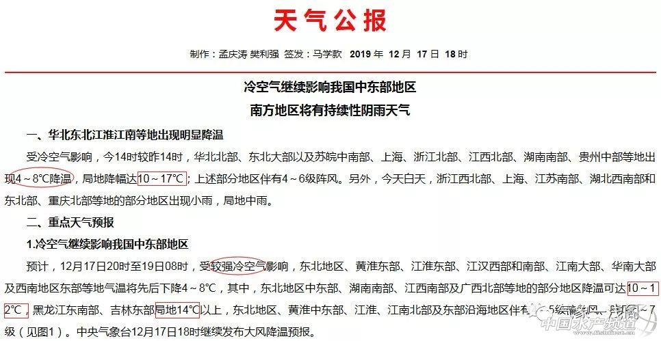 | 中國水產頻道綜合報道, 北方暴雪不停,冷空氣再暴襲廣東、廣西、福建、浙江、江蘇多地,斷崖式降溫,你的魚塘還好嗎?!附冬季低溫魚塘的管理要點 說到冷空氣,降溫總是一個揮之不去的話題,尤其是冬季,更是如此。16日起,今年12月第4波冷空氣正式南下了,對我國影響很大,強降雪和大降溫就是例子。比如,16日時北方地區出現了大雪,北京延慶更是10.2毫米暴雪。17日官方播報,內蒙古、北京、天津和東三省降雪厲害,出現了中到大雪。 另外,這還沒完,之前預報的黑龍江南部、吉林中部和東南部、遼寧東部等地,更是出現了暴雪。當然強降雪如此明顯,一切都是冷空氣南下惹的禍,大降溫又來了。官方最新數據顯示,17日白天,東北大部、華北北部、貴州中部、湖南南部、蘇皖中南部、上海、浙江和江西的北部等地,已經出現了4~8℃的降溫。 而上述地區局地氣溫降幅更大,達到了恐怖的10~17℃,實在嚇人。這樣一來,從整個情況看,某些地區最高17℃的降幅,算是大暴跌了,整體進入了嚴寒狀態。當然,即使目前出現了大降溫,但是還沒完,尤其是新冷空氣升級的情況下,1050百帕以上的冷高壓,預示著新冷空氣影響我國的程度或加大。 昨天,受到一股冷空氣影響,東北和長江流域氣溫暴跌模式已經開啟。其中東北三省會降溫明顯——哈爾濱、長春、沈陽最高氣溫全線跌破冰點,伴隨著3到4級的偏北風,體感十分寒冷。 然而,氣溫的暴跌還沒有結束,今天,東北各地將再迎“斷崖式”降溫,其中哈爾濱、長春的最高氣溫甚至將跌至-10℃以下,氣溫將處于與常年同期相比偏低的狀態。 而在長江流域,雖然比不上東北的天寒地凍,降溫的幅度也相當可觀。今明天,受冷空氣南下及持續降雨的影響,湖南北部、貴州南部、廣西中南部及廣東西部等地氣溫將下降6~8℃,廣西局地降溫可達10~12℃。降溫過后,江淮、江南多地的氣溫將繼續跌至個位數,部分地區累計降幅可達15℃,再加上4到5級的偏北風,體感會十分寒冷。城市中,武漢、上海、杭州、南昌等地氣溫還將陸續創下今年下半年氣溫新低,出門一定要捂嚴實點。 與此同時,南方的降雨今天還將繼續擴張地盤,尤其是江淮、江南等地降雨的強度還將加強。中央氣象臺預計,今天南疆西部山區和新疆沿天山地區、甘肅河西、內蒙古中部和東北部、西藏東部和西部、陜西南部、湖北北部和西部、湖南西北部、四川西部和南部、重慶中東部、貴州西北部等地部分地區有小到中雪或雨夾雪。江淮大部、江漢東部、江南、西南地區東部、華南大部等地部分地區有小到中雨,其中,湖南南部、廣西東北部等地部分地區有大雨。甘肅河西、河北北部、遼東半島、西藏中部、山東半島等地部分地區有4~6級及以上風。 明天,南疆南部及北疆西部和北部、青海南部、內蒙古東北部、黑龍江中部、吉林東南部、遼寧東北部、西藏北部和東部、四川西部等地部分地區有小雪或雨夾雪,其中,北疆北部和新疆伊犁河谷等地部分地區有中雪。江淮南部、江漢東部、江南、西南地區東部和北部、華南大部等地部分地區有小到中雨,其中,江西東部、福建西北部、廣西東北部等地部分地區有大雨(25~28毫米)。內蒙古中部、華北北部、山東半島、江南北部、西藏西部等地部分地區有4~5級及以上風。 20日,新疆南部和北部、青海南部、內蒙古東北部、黑龍江北部、西藏北部和東部、西南地區北部等地部分地區有小到中雪或雨夾雪,其中,北疆北部和西部等地部分地區有中到大雪。江淮西部和南部、江漢、江南、西南地區大部、華南及臺灣等地部分地區有小到中雨,其中,湖南南部、江西中北部及廣西東北部等地部分地區有大雨。內蒙古西部、華北北部、遼東半島、山東半島及西藏中西部等地部分地區有4~5級及以上風。 對江南地區來說,今天風雨交加,出行需注意行車安全,帶好雨具。而對于嚴重缺水的江西中南部、福建、廣東一帶,今天也會“喜提”小到中雨,對于緩和當地氣象干旱、降低森林火險等級有利。 廣東今起三天多雨水,天氣漸轉濕冷 今起三天,中等強度冷空氣逐漸自北向南影響廣東,天氣轉為陰冷,北部市縣有小雨局部中雨(日平均氣溫下降6~8℃),中部市縣有小雨(日平均氣溫下降4~6℃),南部市縣有分散小雨(日平均氣溫下降3~5℃),陸地風力逐漸轉為偏北風3-4級陣風5級,高海拔或高地風力可達4-5級陣風6級。 今天夜間到明天,大部分市縣氣溫逐漸下降,北部陰天有小雨局部中雨,中部陰天有小雨,南部多云間陰天有分散小雨。最低氣溫:韶關和清遠、河源北部5~7℃(高海拔山區4℃左右),南部沿海市縣14~17℃,其余市縣9~14℃。 20日,北部市縣陰天有小雨,中部市縣陰天有分散小雨,南部市縣多云間陰天有零星小雨。最低氣溫:粵北5~8℃(高海拔山區4℃左右),南部沿海市縣14~16℃,其余市縣9~13℃。未來三天,廣東降雨降溫,漸轉濕冷,公眾請注意添衣,雨天出行注意交通安全。另外,19日白天開始,廣東沿海海面逐漸加大到6-7級陣風8級,需注意海上航行安全。 浙江雨水相伴,降溫10℃ 浙江未來幾天陰雨持續,其中,中北部部分地區今天(18日)有中雨。同時,受冷空氣影響,還會有大風和降溫天氣。昨天白天,冷空氣影響浙北地區,下午14時,杭嘉湖一帶降溫明顯,部分地區較前一天同時次降幅達10℃左右。但是浙南仍然異常溫暖,14時27分,青田氣溫已達29.1℃,破12月歷史最高氣溫紀錄。 冷空氣