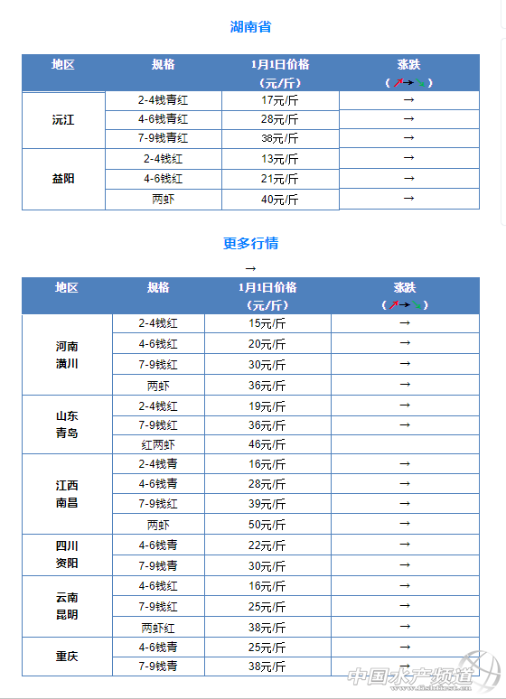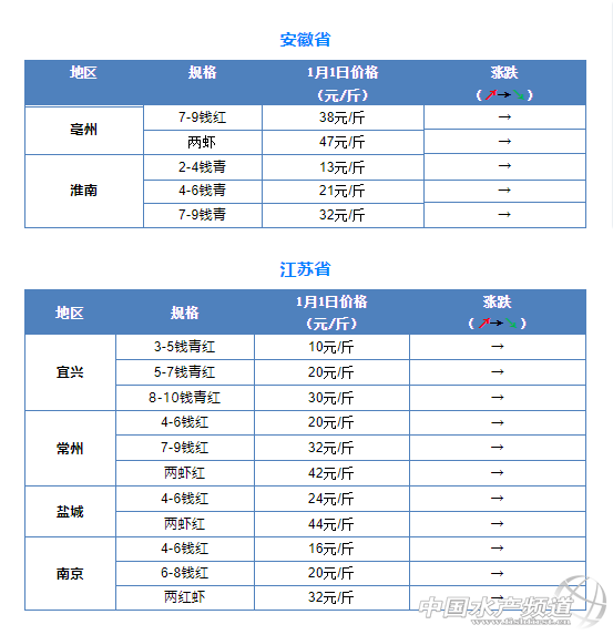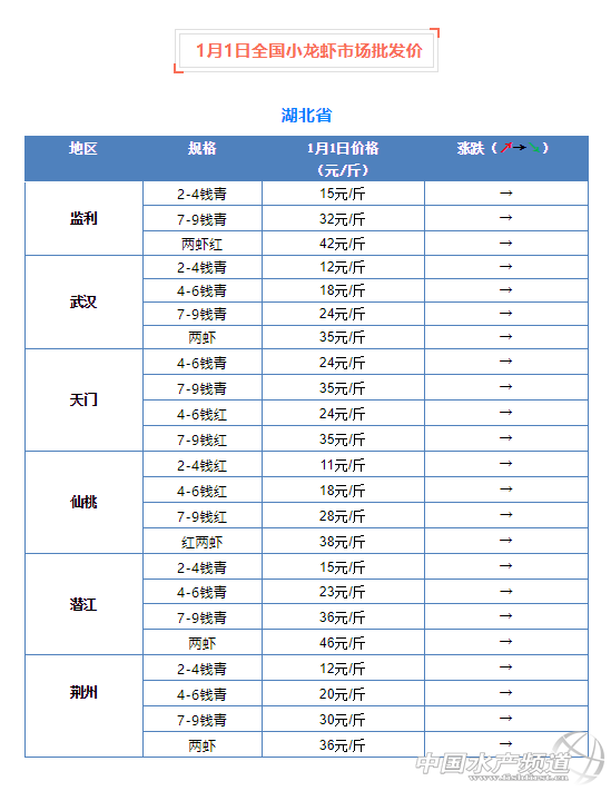 摘要: 中國水產(chǎn)頻道報道,1月1日全國小龍蝦市場批發(fā)價。