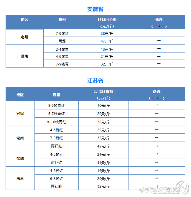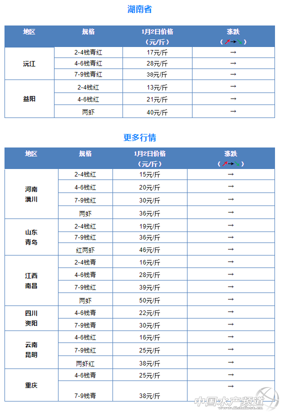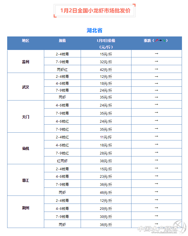 摘要: 中國水產頻道報道,1月2日全國小龍蝦市場批發價。