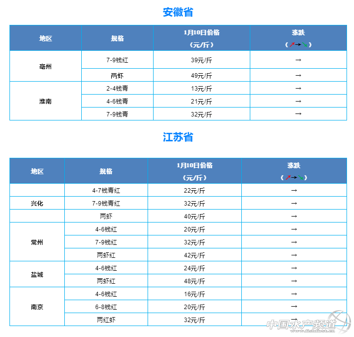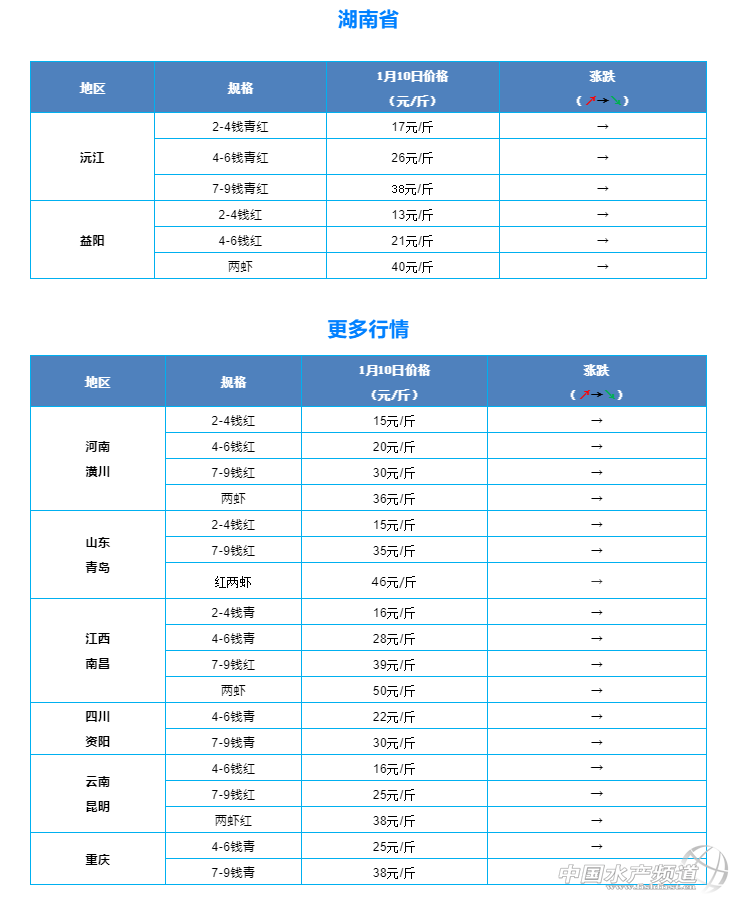 摘要: 中國水產頻道報道,1月10日全國小龍蝦市場批發價 。