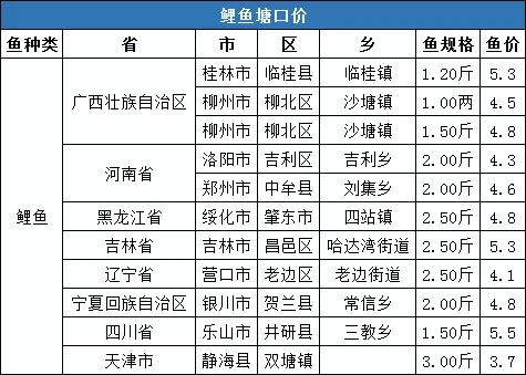 | 中國水產頻道報道, 通威農牧資訊 張梅 鯉魚 數據分析:本周全國鯉魚塘口均價4.7元/斤,同比上漲0.86%,環比上漲3.3%。 華北地區:吉林地區本地無魚可出,因各批發點開始備貨,外地魚增加,價格較上周上漲0.2元/斤。河北地區近期出魚量較大,價格已達4.3-4.4元/斤。沈陽地區流通速度加快,價格與上周持平。河南、黑龍江地區價格與上周基本持平。 華西地區:四川地區鯉魚存塘依舊較大,出魚量穩定,價格較上周上漲0.2元/斤。 華南地區:廣西鯉魚價格與上周持平。 走勢預測:華北地區鯉魚出魚量增加,預計近期價格穩中有漲。(本文轉自【通威農牧資訊】。如有版權問題,敬請聯系wx@fishfirst.cn。) |