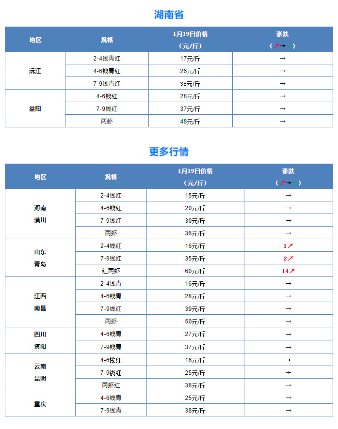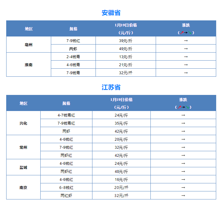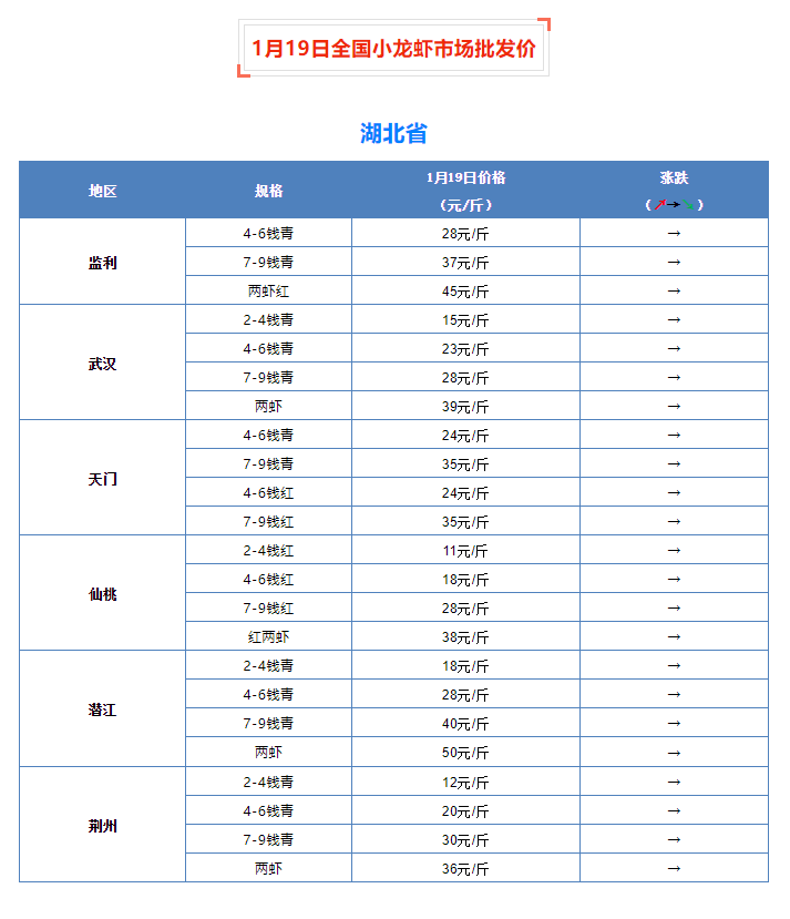 摘要: 中國水產頻道報道,1月19日全國小龍蝦市場批發價。