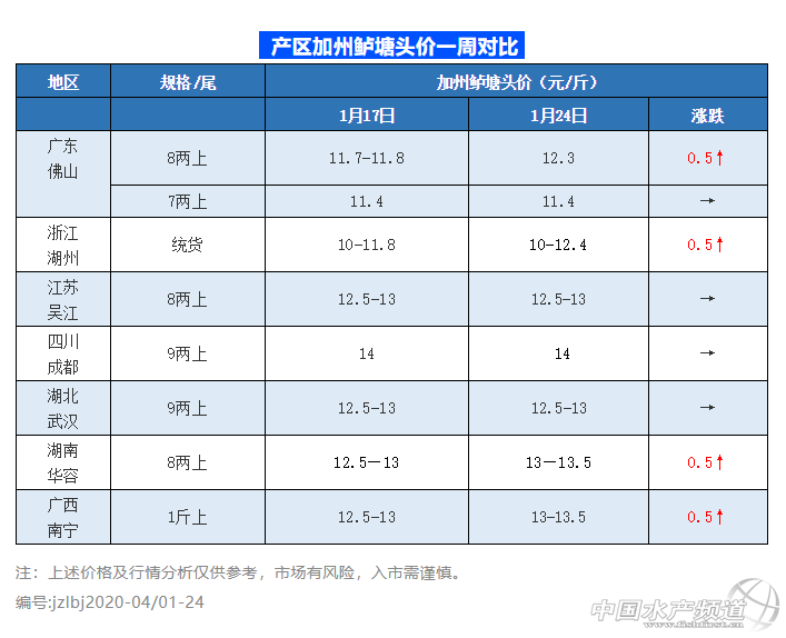 | 中國水產(chǎn)頻道原創(chuàng)報(bào)道, 加州鱸最新塘頭報(bào)價與各主產(chǎn)區(qū)簡析 文/圖 鱖鱸前沿 賀志義 加州鱸行情走勢 一周整體行情綜述 加州鱸本周價格再次上漲,廣西南寧、、華南華容、浙江湖州(8兩上)最高上漲0.5元/斤,廣東佛山最高漲0.2元/斤,本周喜迎農(nóng)歷新年,合家團(tuán)聚,市場需求量持續(xù)增加,尤其是大規(guī)格魚持續(xù)暢銷,某業(yè)內(nèi)人反映他的走貨量比上周增加50%。再加上大部分地區(qū)養(yǎng)殖戶出魚熱情高,爽市不斷。但是臨近春節(jié),工人費(fèi)和車費(fèi)上漲,出魚成本預(yù)計(jì)略微提高,持續(xù)看好后市魚價。 各地行情簡析 廣東佛山:今天一斤上12.5元/斤,8兩上12.3元/斤,價錢根據(jù)實(shí)際上車規(guī)格有浮動,隨著春節(jié)將到市場需求量明顯增大,特別近幾天,而且養(yǎng)殖戶也趁著好行情陸續(xù)出魚,并著手清塘,為育苗做好準(zhǔn)備。外省魚車為春節(jié)備貨裝魚量增多,而且大規(guī)格魚價格更高,市場行情普遍比較好,建議養(yǎng)殖戶關(guān)注行情變化并結(jié)合自身實(shí)際情況,選擇合理出魚時機(jī)。 浙江湖州:靠近華東消費(fèi)市場,湖州魚價連續(xù)兩周上漲,統(tǒng)貨可達(dá)12.4元/斤(八成8兩上的),大規(guī)格的魚也有上漲,8兩上12.5元/斤,上漲0.5元/斤。 江蘇吳江:8兩上報(bào)價12.5-13元/斤,價格與上周保持一致。吳江地區(qū)目前達(dá)到出魚規(guī)格的貨并不多,部分養(yǎng)殖戶保持觀望,而且當(dāng)?shù)胤醇竟?jié)魚較多,預(yù)計(jì)等年后再賣。 四川成都:今天報(bào)價9兩上14元/斤,價錢與上周持平,春節(jié)將至,市場需求量增大,養(yǎng)殖戶出魚積極性有明顯提升,所以本周出魚量有較大增幅。 湖北武漢:今天報(bào)價12-13元/斤,價格與上周保持一致。但是目前武漢封城,再加上本地魚不多,市場主要依靠外省貨源,預(yù)計(jì)后期魚價可能會有所波動,應(yīng)該利好本地魚價。 湖南華容:今天報(bào)價13-13.5/斤,最高比上周上漲0.5元/斤,價錢主要根據(jù)大規(guī)格魚占比浮動,但是當(dāng)?shù)仞B(yǎng)殖戶出魚積極性一般,再加上廣東地區(qū)的魚價有優(yōu)勢,吸引部分流通商前往廣東抓魚,為春節(jié)備貨。 廣西南寧:1斤上報(bào)價13-13.5/斤左右,比上周上漲0.5元/斤。本地魚量較少,但是臨近春節(jié),市場需求大,本地貨量難以滿足,部分流通商前往廣東抓魚。 溫馨提示 截至1月23日24時,國家衛(wèi)生健康委收到29個省(區(qū)、市)累計(jì)報(bào)告新型冠狀病毒感染的肺炎確診病例830例,其中重癥177例,死亡25例。請大家出行注意安全,做好個人防護(hù)工作。(本文轉(zhuǎn)自【糧油信息網(wǎng)】。如有版權(quán)問題,敬請聯(lián)系wx@fishfirst.cn。) |