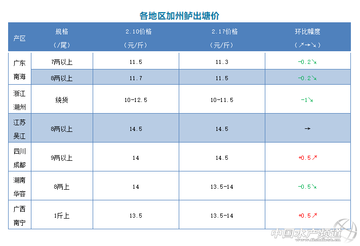 | 中國水產頻道原創報道, 文/圖 何氏水產、水產前沿 李靜 加州鱸 1、受到疫情持續影響,本周市場行情與上周差不多,全國鱸魚銷量還沒有上漲,與上周差不多。本周廣東鱸魚8兩上開塘價持續下跌了0.2元/斤,最高只有11.5元/斤,7兩以上價格在11.3元/斤;6兩以上11.0元/斤,大概也下跌了0.2-0.3元/斤,1斤以上的魚由于北線市場都沒有開業,暫時沒有什么人捉1斤以上的魚,實際塘頭價格根據魚頭大小和規格不同略有浮動。現在廣東鱸魚存塘量還是很多,特別是偏大魚更多,由于需求偏大魚的市場還沒有開通,目前很少人開偏大魚,還是以偏小魚為主,這種情況或許還要持續一斷時間,等疫情有好轉,市場開通,以上情況才會有轉機。 2、浙江湖州同樣受到疫情的持續影響,出行受限情況較之前有好轉,銷量相對上升了一些,但總體還是銷量不大,統貨報價比上周下跌了1元/斤,價格在10-11.5元/斤,8兩以上大概13.5元/斤,具體價格要看魚頭大小和規格成數而定。 3、江蘇吳江情況與浙江湖州情況差不多,出塘量也不多,價格與上周一樣,根據魚頭大小及規格比例多少略有調整。當地也積壓了不少魚,存塘壓力大,銷量比往年銳減,后面行情暫不樂觀。 4、四川成都市場行情比上周好,銷量也上升了,9兩上報價比上周上升了0.5元/斤,達到14.5元/斤。 5、湖南華容8兩以上報價比上周下跌了0.5元/斤,只有13.5-14元/斤,當地銷量不多,只是開一點量在本地賣。廣西南寧情況差不多,銷量也不大,價格稍微上升了0.5元/斤,報價13.5-14元/斤,情況暫時不會好轉。 |