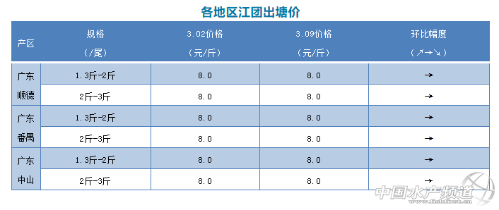 | 中國水產(chǎn)頻道原創(chuàng)報道, 文/圖 何氏水產(chǎn)、水產(chǎn)前沿 李靜 江團 1、廣東江團市場行情跟上周一樣,開工抓魚量還是不大,也是抓大魚為主,滿足本地市場銷量,外地發(fā)貨不多。現(xiàn)在開塘價保持穩(wěn)定,中小魚價格有8.0元/斤,大魚價格7元/斤,銷量不大,江團銷量暫時不會有太大改變,等外省市場開通后情況有所好轉(zhuǎn)。 2、四川江團疫情有所好轉(zhuǎn),開工量相對比之前多一些,但也只是本地銷售。現(xiàn)在當?shù)卮嫣亮窟有一部分,行情會慢慢好轉(zhuǎn)起來。 |