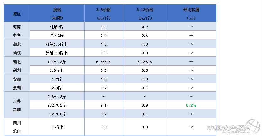 文/ 水產前沿 葉豐齊 2020鮰魚行情走勢 一周要聞 中國水產頻道原創報道,習近平總書記在考察湖北時強調:“密切監測市場供需和價格動態,保障米面糧油、肉禽蛋奶等生活必需品供應,暢通‘最后一公里’。武漢人喜歡吃活魚,在條件允許的情況下應多組織供應……” 習總書記的講話無疑給我國水產從業者極大的鼓舞。因為活鮮水產品供應目前正面臨著一些新冠疫情所帶來的難題。從疫期開始,湖北境內水產品流通基本停滯,省外流通也遲遲難以恢復順暢,即便成功申請通行證,省外水車在主觀上也不會進入湖北采購水產品。當地魚販反映,湖北本地水車把魚拉到其他省份水產批發市場銷售時,基本沒有人愿意購買,要把魚轉移到當地的魚車后才能順利售出。據悉,湖北養殖水產品存塘量仍有將近50%。 除湖北外,全國其他省份面臨更多的是消費不足的問題。餐飲消費仍未復蘇,水產品消費需求低,水產交易市場與食品加工企業難以從養殖戶手中大量收購壓塘已久的水產品。有業者告知筆者,在這個“后疫情影響”的大環境下,流通不暢,成魚壓塘難出,若時間久了,不但病害風險會越來越大,養殖戶也得持續投入成本苦苦維持。“目前我們養殖戶最需要的,或許是電費和塘租補貼。” 某鮰魚養殖戶如是表示。 整體行情綜述 本周鮰魚出魚量仍然很少,大部分產區行情與上周持平,少數地區魚價波動;江蘇鹽城3.2-3.8斤(平均3.5-3.6斤)規格較上周下調0.2元/斤;廣西2.5斤以上規格較上周上漲1.5-1.6元/斤;廣東中山2.5斤上規格較上周上調0.3-0.5元/斤,1.3斤上統貨較上周下調0.1元/斤;江門、臺山暫缺數據;珠海出1.8斤以上規格,較上周下跌0.7元/斤。 各產地行情分析 河南地區:當地酒店,餐飲都未正式營業,需求量少,養殖戶期望值較高,惜售走量甚少,2斤左右規格紅鮰9.2元/斤,黑鮰9.4元/斤,與上周行情一致。 湖北地區:仙桃市水產市場一直沒有人賣鮰魚,省外水車也不來抓魚,存塘量還有將近50%,1.5斤以上規格紅鮰本周塘頭價7.8元/斤,1.8斤以上規格黑鮰8元/斤,價格保持;荊州市黑鮰1.2-1.8斤規格塘頭價6.3-6.5元/斤,1.8斤以上規格8.5元/斤,同上周行情;業者反映市場上僅有少量四大家魚銷售,鮰魚養殖戶普遍沒有出魚;某魚販告知筆者,有湖北水車拉魚到陜西水產批發市場,但當地魚販都不買魚,把魚過車到當地魚車后才能出掉。 安徽地區:巢湖地區加工企業產能恢復到40000斤/天,1-2斤規格到廠收購價7元/斤,2-3斤規格8.7元/斤,與上周價格持平(到廠價較當地塘頭價高0.2元/斤,較外地塘頭價高0.5-0.7元/斤);鮰魚加工品以北京、上海和廣州為主要終端市場,已有更多餐飲陸續恢復堂食。 江蘇地區:根據消費市場,鹽城黑鮰有3種規格:走成都市場的0.8-1.3斤規格今年基本沒有出貨;走北京、山東市場的2.2-3.2斤(平均2.5-2.6斤)規格鮰魚約8.9元/斤,環比上周下調0.3元/斤;走甘肅、新疆、西藏、廣西的3.2-3.8斤(平均3.5-3.6斤)規格8.7元/斤,保持上周價格;有業者表示,當地養殖戶希望出魚,但終端消費地區餐飲還沒完全恢復,水產市場對鮰魚的需求量極少,許多客戶下了訂單但還沒有出水車拉魚;估計近期行情不會有太大波動,大家都對4月中下旬餐飲全面復蘇有所期待。 四川地區:四川本地養殖的鮰魚主要在成都和周邊一些城市銷售,主要是烤魚、火鍋和宴席等餐飲,目前部分恢復營業,少量鮰魚消費主要由廣東魚供應;樂山1.5斤以上規格黑鮰9元/斤,同上周價格。 廣西地區:本地存塘大量0.8-1斤鮰魚,因未到上市規格,整體出魚量極少;2.5斤以上較大規格本地鮰魚塘頭價10.5元/斤,環比上周上調1.5-1.6元/斤,基本都是走貴州地區烤魚店,當地偏好體色較深的鮰魚;廣西本地消費對體色無要求,需求2斤以下規格,約8.6元/斤,環比上周上調0.1元/斤。 廣東地區:本地加工廠產能仍未恢復,收購量較少,1-1.5斤統貨約6.1元/斤,養殖戶普遍惜售;廠價不佳,市場價也并非太好,中山地區有四川和山東水車抓2.5斤以上規格鮰魚,約7.6-7.9元/斤,環比上周上調0.3-0.5元/斤;出本地大魚則價格不佳,統貨1.3斤起6.3-6.4元/斤,環比上周下調0.1元/斤,業者表示有零星散戶出魚,但養殖規模較大的養殖戶不愿賣魚;江門和臺山本周數據暫缺;據珠海養殖戶反映,許多魚中表示爛市壓價,本周魚價下跌,1.8斤以上規格鮰魚7.1元/斤,環比上周暴跌0.7元/斤;有業者告知筆者,在整個疫情后遺癥影響的大環境下,成魚持續壓塘流通不暢之際,廣大養殖戶最需要的或許是電費和塘租補貼。 鮰魚報價 說明:塘頭價指從池塘抓魚價格,紅鮰指紅色斑點叉尾鮰,黑鮰指黑色斑點叉尾鮰 編號:hybj2020-3-13 |