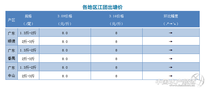 2020年3月16日江團一周塘頭價格行情播報
