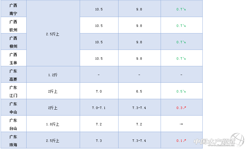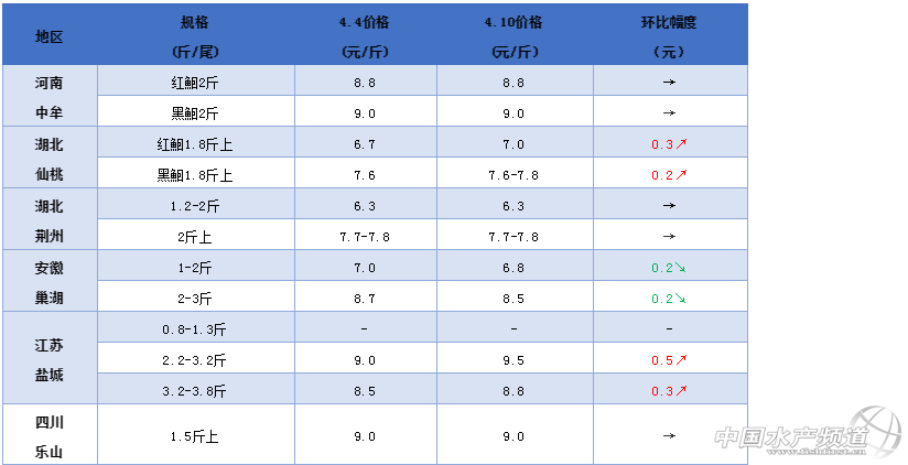 文/ 水產前沿 葉豐齊 2020年鮰魚行情走勢 一周要聞 中國水產頻道原創報道,截至2020年4月11日星期六,海外現有確診新冠肺炎病例超120萬例,較昨日新增6萬多例。 在全球疫情影響下,大多數國家餐飲業基本癱瘓。近期有業內人士表示擔憂,只能進入中國的越南巴沙魚可能會沖擊國內淡水魚消費市場,對價格形成負面影響。 作為斑點叉尾鮰在餐飲端烤魚界的競爭者,巴沙魚價格較為低廉,消費恢復速度可能會更快一些;不過,越南巴沙魚的中國消費市場已經比較穩定,短期出現大幅度增長并不現實。 包括鮰魚在內,其他品種魚自有其消費需求,越南巴沙魚難以輕易取締市場份額,愛吃巴沙魚的消費者會繼續吃巴沙魚,愛吃其他魚的也會繼續消費其他魚。 從肉質、口感、風味等多方面進行比較,鮰魚和巴沙魚并無一致,消費層級也并非完全重合,形成直接競爭關系;它們的消費群體界限可能比較模糊,但相對固定,即便價格再低廉,消費者也不會因此放棄鮰魚,轉而集體消費巴沙魚。 況且,在疫情影響下,越南目前只有少數工廠能夠開工,巴沙魚的供貨量其實是比較有限的,國內本就已有一定的庫存,不大可能再大量進貨,理應不會對淡水魚價造成巨大影響。 國內餐飲業正在慢慢復蘇,各類淡水魚的消費需求始終存在,鮰魚也不例外。 整體行情綜述 本周部分產區鮰魚行情上行,少數地區下調或持平;河南鮰魚保持上周價格;湖北仙桃1.8斤上規格黑鮰較上周上調0.2元/斤,2-3斤規格8元/斤,1.5斤規格紅鮰下調0.2元/斤,1.8斤規格上調0.3元/斤;江蘇鹽城2.2-3.2斤(平均2.5-2.6斤)規格較上周上調0.5元/斤,3.2-3.8斤(平均3.5-3.6斤)規格較上周上調0.3元/斤;廣西2.5斤以上規格較上周下調0.7元/斤;廣東中山2斤上規格上調0.3元/斤,1.3斤上統貨較上周上調0.2元/斤;江門0.8斤規格下調0.2元/斤,1.2斤和2斤上規格較上周皆下調0.5元/斤;臺山1.3-3.5斤規格6.6元/斤,1.8斤以上規格上調0.2元/斤,2.5-3斤規格7.4元/斤;珠海1.8斤起6.6-6.7元/斤,2.5斤以上規格上調0.1元/斤;其他地區價格與上周一致。 各產地行情分析 河南地區:外地水車頻頻到河南抓魚,需求量持續增加,但目前并無魚中開高價,成交量少,2斤左右規格紅鮰8.8元/斤,同規格黑鮰9元/斤,皆同上周行情,業者表示養戶基本處于惜售、持續觀望的狀態,相信后市價格會進一步上漲。 湖北地區:據了解,湖北目前鮰魚商品魚存塘2300噸(460萬斤)左右,不到商品規格的約占1600-1800噸,能加工的商品魚在1000噸左右,大約會在6月上旬開始加工;仙桃市1.5斤上規格紅鮰6.5元/斤,1.8斤以上7元/斤;黑鮰1.4斤以上規格6.7-6.8元/斤,1.8斤以上7.6-7.8元/斤,環比上周上調0.2元/斤,2-3斤8元/斤,有養殖戶每天出魚10萬斤以上,水車走外省市場;荊州存塘的大部分是2斤以下規格,1.2-2斤規格黑鮰塘頭價6.3元/斤,少量2斤以上規格7.7-7.8元/斤,暫時保持上周價格。 安徽地區:因為消費端餐飲堂食并未能完全恢復,鮰魚加工品出貨量少,在庫存較滿的情況下,巢湖地區加工企業逐漸減少對斑點叉尾鮰成魚的收購量,每日僅有16000-20000斤,環比上周約下降30%,收購價也相應下降,1-2斤規格到廠收購價6.8元/斤,2-3斤規格8.5元/斤,環比上周下調0.2元/斤(到廠價較當地塘頭價高0.2元/斤,較外地塘頭價高0.5-0.7元/斤)。 江蘇地區:根據消費市場,鹽城黑鮰有3種規格:走成都市場的0.8-1.3斤規格今年基本沒有出貨;走北京、山東市場的2.2-3.2斤(平均2.5-2.6斤)規格鮰魚約9.5元/斤,環比上周上調0.5元/斤;走甘肅、新疆、西藏、廣西的3.2-3.8斤(平均3.5-3.6斤)規格8.8元/斤,環比上周上調0.3元/斤;本周北京市場還未能走貨,出魚的養戶比較少,大部分在觀望等待;大豐東臺仍存塘1000萬斤左右,少量貨源依舊發往東北遼寧,一周10-14萬斤左右,發往西南、西北地區的貨每周也有10多萬斤;待北京市場復蘇,相信出魚量將大量增加,行情有一定上漲空間,但也應避免擠兌。 四川地區:烤魚、火鍋餐飲全面恢復營業,鮰魚需求急劇上升,樂山仍存塘200萬斤左右,現時每周出魚40萬斤,1.5斤以上規格黑鮰塘頭價9元/斤,保持上周行情;因養戶計劃在5月份清塘,當前入川外地鮰魚數量增加,約7.8元/斤,以滿足四川消費市場。 廣西地區:本周依然以本地消費為主,1.5斤左右規格塘頭價7.8-8元/斤,2斤左右規格的8.3-8.5元/斤,而2.5斤以上大規格約9.8元/斤,環比上周下調0.7元/斤;據當地業者反映,貴州當地開始出魚,水車停止來廣西抓魚,行情隨需求量下降;目前2斤以上的魚甚少,而1.3-1.5斤規格鮰魚存塘量還比較多;有業者表示,目前因短期供求而導致的跌價問題不大,大多數養戶希望養大規格魚,在勞動節或中秋假期出售以博取好行情;另外,當地養戶現在開始放新苗了。 廣東地區:新魚逐漸到上市規格,而大規格叉尾存塘仍多,繼續投料養戶容易虧本,急于出大魚,市場價格有所波動;中山地區2斤以上規格鮰魚7.3-7.4元/斤,環比上周上調0.3元/斤,1.3斤起統貨6.3元/斤,環比上周上調0.2元/斤;江門0.8斤規格6.1元/斤,環比上周下調0.2元/斤,1.2斤規格6.1元/斤,2斤上規格6.5元/斤,環比上周皆下調0.5元/斤;臺山現在流通量稍微加大,有養戶一周可出魚50萬斤,但仍有1000萬斤左右存塘,1.3-3.5斤規格6.6元/斤,1.8斤以上規格7.2元/斤,暫同上周行情,而2.5-3斤規格7.4元/斤;珠海工廠收購量小,走市場價錢也不理想,流通極其緩慢,1.8斤起鮰魚6.6-6.7元/斤,有養戶表示每天只能走1萬多斤魚;而2.5斤上規格7.3-7.4元/斤,環比上周上調0.1元/斤,但尚有十幾