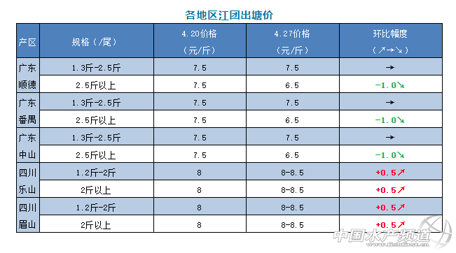 2020年4月27日江團一周塘頭價格及行情播報