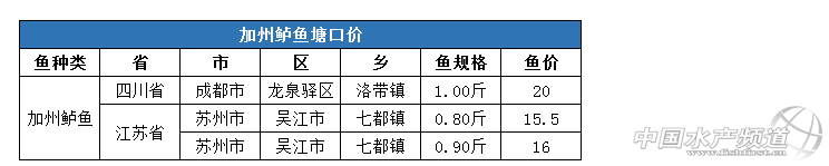 來源:通威農牧資訊 作者:張梅 中國水產頻道報道,數據分析:本周全國加州鱸魚均價為17.17元/斤,同比上漲5.66%,環比上漲2.51%。 華東地區:江蘇地區前期出統貨較多,近期成魚僅成,價格較上周上漲0.5元/斤。 華西地區:四川地區加州鱸價格持續上漲,養殖戶惜售待價,價格較上周上漲2元/斤。 |