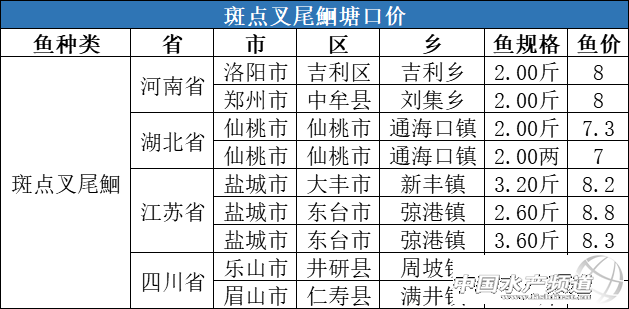 | 中國水產頻道原創報道, 斑點叉尾鮰 數據分析:本周全國斑點叉尾鮰均價為7.96元/斤,環比下跌4.67%。 華東戰區:江蘇地區流通減少,價格較上周下跌0.4-0.6元/斤。 華北戰區:河南地區近期進入農忙季節,城市需求量減少,加之外省水車較少,存塘量還有40%,價格下跌0.5-0.7元/斤。 華中地區:湖北地區存塘僅20-30%,流通緩慢,價格下跌0.2-0.5元/斤。 |