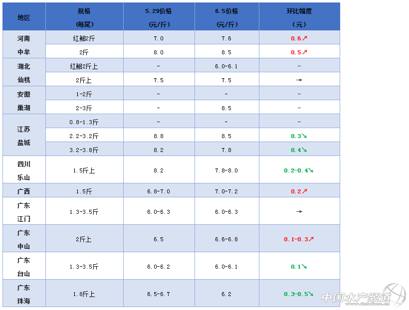 文/ 水產前沿 葉豐齊 一周要聞 中國水產頻道原創(chuàng)報道,國務院總理李克強在十三屆全國人大三次會議閉幕后的記者會親自為成都“地攤經濟”點贊。6月1日,李克強總理在考察山東煙臺一處老舊小區(qū)時第二次點贊地攤經濟。李克強說,“地攤經濟、小店經濟是就業(yè)崗位的重要來源,是人間的煙火,和‘高大上’一樣,是中國的生機”。地攤經濟火火火,火了! 在水產品類中,“烤魚”為夜市重要單品之一,或為淡水魚類終端消費提供新的增量。其主要使用草魚、生魚(烏醴)、鮰魚等魚種。據中國水產頻道,目前全國的草魚塘頭價相比上月同期繼續(xù)有大幅上漲,且最新行情仍然表現穩(wěn)中有升;生魚批價也比去年有所上漲。今天,河南、廣東、廣西等地叉尾鮰價格上漲,借地攤經濟東風,這條“烤魚”網紅的后市價格是否大概率上漲? 2020年鮰魚行情走勢 整體行情綜述 本周各產區(qū)鮰魚行情波動。河南2斤規(guī)格紅鮰回升0.6元/斤,同規(guī)格黑鮰回調0.5元/斤;湖北仙桃2斤上紅鮰6-6.1元/斤,同規(guī)格黑鮰價格保持;安徽地區(qū)加工廠仍未恢復收魚,但對2-3斤規(guī)格開出8.5元/斤的到廠價;江蘇鹽城2.2-3.2斤(平均2.5-2.6斤)規(guī)格下調0.3元/斤,3.2-3.8斤(平均3.5-3.6斤)規(guī)格下調0.4元/斤;四川樂山1.5斤上規(guī)格鮰魚價格下調0.2-0.4元/斤;廣西1.5斤上規(guī)格池塘魚上調0.2元/斤,3斤上網箱魚上調0.5元/斤;廣東加工廠0.8-3斤規(guī)格塘頭收購價不變,中山1.3斤上統(tǒng)貨下調0.1-0.2元/斤,2斤上規(guī)格上調0.1-0.3元/斤,江門1.3-3.5斤規(guī)格價格持平,臺山1.3-3.5斤規(guī)格下調0.1元/斤,珠海1.8斤上規(guī)格較上周下調0.3-0.5元/斤。 各產地行情分析 河南地區(qū):新魚上市一周后走量比較順利,內銷和外銷都很給力,業(yè)者表示日銷量應該有30萬斤;魚價回升,2斤上規(guī)格黑鮰8.5元/斤,環(huán)比上周上調0.5元/斤,同規(guī)格紅鮰7.6元,環(huán)比上周上調0.6元/斤;不過,鮰魚行情受當地存量和外圍市場的影響較大,有部分養(yǎng)戶表示,前段時間魚價回落,是一些流通商在調控價格,黑鮰最低開價7.8元/斤,大家不賣,價格又漲了上來了。 湖北地區(qū):大部分水車跑到河南抓魚,促使當地行情下調;仙桃市2.2-3.5斤黑鮰標貨7.5元/斤,同上周,2-5斤規(guī)格黑鮰統(tǒng)貨7.2元/斤,而同規(guī)格紅鮰大約6-6.1元/斤,出魚量整體都比較小;魚苗方面,卵黃苗大約160元/萬尾,7-10尾/斤規(guī)格6.8元/斤,3-4尾/斤的7元/斤。 安徽地區(qū):巢湖地區(qū)加工企業(yè)生產線還在整改中,預計本月10號將恢復生產;2-3斤規(guī)格原料魚收購價8.5元/斤,而1-2斤規(guī)格因疫情對出口訂單的影響暫不收購。 江蘇地區(qū):養(yǎng)戶不再觀望,積極出魚,但消費市場還是比較疲軟,走北方市場的魚較去年同期少了很多;走北京、山東市場的2.2-3.2斤(平均2.5-2.6斤)規(guī)格鮰魚約8.5元/斤,環(huán)比上周下調0.3元/斤;走西南西北地區(qū)的3.2-3.8斤(平均3.5-3.6斤)規(guī)格7.8元/斤,環(huán)比上周下調0.4元/斤;據業(yè)者反映,目前每天就幾輛車拉魚,大約走7萬-8萬斤,而現在存塘量還有幾百萬斤,拿卵黃苗的養(yǎng)戶少了一些,大多都養(yǎng)去年標粗的苗或從當地標粗場拿的較大規(guī)格的魚苗。 四川地區(qū):樂山1.5斤以上規(guī)格黑鮰塘頭價7.8-8元/斤,環(huán)比上周下調0.2-0.4元/斤;有業(yè)者反映,當地養(yǎng)殖大戶開始大批出魚,每天10萬斤以上,對市場行情造成了一定影響;但業(yè)者同時表示,影響只是暫時的,大多數養(yǎng)戶目前選擇觀望,等一等再出魚。 廣西地區(qū):區(qū)域之間有價格差異,基本在0.2元/斤上下浮動;2.5-3斤上網箱魚10元/斤,環(huán)比上周上調0.5元/斤,不過量不是很多;目前存塘量較多的1.5斤規(guī)格7-7.2元/斤,環(huán)比上周上調0.2元/斤,但養(yǎng)戶基本不會出,而是繼續(xù)養(yǎng)到2斤上;本地出魚量少,有水車冒著高溫長途運輸風險到廣東拉差價將近1元/斤的鮰魚,有業(yè)者表示最近幾天頻頻下雨降溫,跑長途也相對順利一些,但車次不多。 廣東地區(qū):到廣東抓魚的北方車減少90%以上,2斤上大規(guī)格魚基本只能以統(tǒng)貨價格甩賣本地加工廠;因存量仍較多,加上近期高溫病魚增加,加工廠也開始收不過來;現時加工廠以6.2元/斤收8兩到3斤規(guī)格統(tǒng)貨,但對藥殘檢驗非常嚴格;肇慶振業(yè)每天收10萬斤切片,而明基日收5萬-6萬斤開背;中山2斤上大魚基本沒車抓,間中有少量貴州車拉走廣西、貴州市場,要的量不多,大約6.6-6.8元/斤,環(huán)比上周上調0.1-0.3元/斤;有一些養(yǎng)戶出1.3斤上統(tǒng)貨跌破6元大關,僅5.8-5.9元/斤,環(huán)比上周下調0.1-0.2元/斤;江門1.3-3.5斤市場規(guī)格6-6.3元/斤,同上周;臺山1.3-3.5斤規(guī)格塘頭價大戶出6-6.1元/斤,環(huán)比上周下調0.1元/斤,而散戶僅有5.8-5.9元/斤,環(huán)比上周下調0.2-0.3元/斤;珠海1.8斤上規(guī)格6.2元/斤,環(huán)比上周下調0.3-0.5元/斤。 鮰魚報價 說明:1.上述價格及行情分析僅供參考,市場有風險,入市需謹慎 2.塘頭價指從池塘抓魚價格,紅鮰指紅色斑點叉尾鮰,黑鮰指黑色斑點叉尾鮰 編號:hybj2020-6-5 特別感謝龔旺先生對本文的支持! |