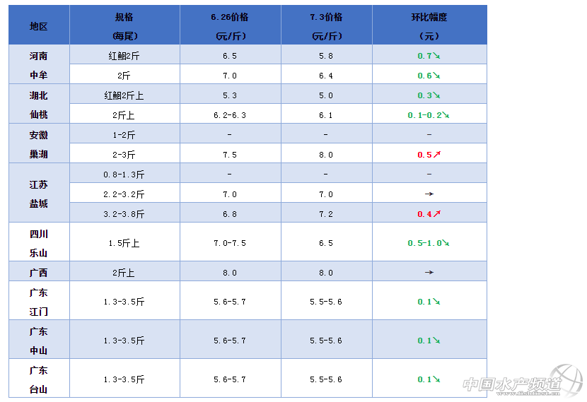 文/ 水產前沿 葉豐齊 2020年鮰魚行情走勢 整體行情綜述 中國水產頻道原創報道,本周鮰魚行情繼續波動,多數產區魚價下調。河南2斤規格黑鮰下調0.6元/斤,同規格紅鮰下調0.7元/斤;湖北仙桃2斤上紅鮰下調0.3元/斤,同規格黑鮰下調0.1-0.2元/斤;安徽地區2-3斤規格到廠價上調0.5元/斤;江蘇鹽城2.2-3.2斤(平均2.5-2.6斤)規格價格不變,3.2-3.8斤(平均3.5-3.6斤)規格的下調0.4元/斤;四川樂山1.5斤上規格鮰魚價格下調0.5-1元/斤;廣西各規格鮰魚價格皆與上周一致;廣東加工廠0.8-3斤規格切片魚下調0.1元/斤,1.55-2.75斤規格開背魚價格保持,中山、江門、臺山1.3-3.5斤規格走市場統貨皆下調0.1元/斤。 各產地行情分析 河南地區:2斤上規格黑鮰6.4元/斤,環比上周下調0.6元/斤,同規格紅鮰5.8元/斤,環比上周下調0.7元/斤。受北京需求縮減影響,河南作為全國活魚中轉站,各地魚車都會經過,這積壓了一部分量,對本地魚形成擠兌,令價格波動大且頻繁;實際上,有部分養戶在前期能夠賣魚,但可能對價格期望過高,拖到如今略為進退維谷;不過,據當地業內人士表示,從產業前景來看,北方叉尾鮰行情應該看漲,至于何時還得看疫情發展態勢;筆者認為,后市不確定因素較多,現在出魚還能保本獲取微利,建議養戶盡量先出一批,把握主動權,再行觀望。 湖北地區:仙桃市每天鮰魚流通量約5萬斤左右,主要流向貴州市場,對顏色、質量要求高,池塘魚難以達標,影響價格;剩下小部分銷往西北地區,原本走北方市場的貨現在基本只能由別處市場消化,流通效率下降不少,同時遭受其他產區魚競爭,對行情形成掣制;2-4斤黑鮰塘頭價6.1元/斤,環比上周下調0.1-0.2元/斤,同規格紅鮰塘頭價5元/斤,環比上周下調0.3元/斤;據了解湖北規格魚現在還有不少,價低養戶也得忍痛出售,以免影響后續生產;業者認為當河南和江蘇魚慢慢減少后,湖北魚價才可能回升。 安徽地區:巢湖加工企業每天由全國各產區收購大約15萬噸斑點叉尾鮰原料魚,2-3斤規格到廠價8元/斤,環比上周上調0.5元/斤。 江蘇地區:走北京、山東市場的2.2-3.2斤(平均2.5-2.6斤)規格鮰魚約7元/斤,維持上周價格;走西南西北地區的3.2-3.8斤(平均3.5-3.6斤)規格7.2元/斤,環比上周上調0.4元/斤。北京市場流通受阻讓北方貨缺少了價格風向標,出現亂象,有的甚至掉到了6塊多;此規格貨源目前分批走上海、南京、山東、天津、河北、河南市場,流通量與價格相較往年慘淡;低于7塊大戶普遍不會賣,但散戶資金壓力大,心里著急,流通商會壓壓價。氣溫升高后,原本銷往西北的大規格魚多數流向西南貴州市場。另外,有業內人士表示,目前爛市很可能是2-4月疫情積壓魚導致的后遺癥,加之新魚開始集中上市,市場流通壓力增大,加工廠也由于餐飲及出口需求下降減量,據悉從往年同期7-8車/天減少至1-2車/天。 四川地區:樂山1.5斤以上規格黑鮰塘頭價6.5元/斤,環比上周下調0.5-1元/斤。受魚價暴跌當頭一擊,當地流通商、養殖戶都有點茫然,因為養殖大戶魚基本出完,且沒有外省魚入川,理論上市場存魚不算特別多。據悉,目前成都日流通量大約在15萬-18萬噸之間,一般規格魚都在川渝地區消化,因疫后市場低迷和消費力下降,需求較疫前減少許多,正處于緩慢恢復期,加上北京疫情對全國水產品流通消費也造成一定連鎖影響。除了供應周邊次級市場,還有一部分本地貨源流向貴州和云南市場,這兩地皆需求超規格魚,差價會比普通規格魚高0.5元/斤,但存塘量較少,不算當下消費主流。 廣西地區:2.5-3斤上網箱魚10.2元/斤,1.5斤上規格網箱魚7.8元/斤,2斤上8.8元/斤,1.5斤上池塘魚7元/斤,2斤上8元/斤,皆保持上周價格;總存塘量較往年減少,規格魚不多,也沒有外省魚入桂競爭,本地消費加上貴州和云南市場,讓供求相對穩定,后市行情可能保持到11月,間中或有微小波動,但不影響大局。 廣東地區:在北方車重新南下之前,廣東叉尾鮰價格回暖無望,建議存塘密度大的養戶盡早出,目前魚價仍有微利,起碼先保本再考慮拼一把后市。加工廠基本停收開背魚,偶爾收購一次3萬-5萬斤,1.55-2.75斤規格6-6.1元/斤,同上周價格,但需要排隊檢測;0.8-3斤統貨切片魚則是有多少收多少,每天10萬-12萬斤左右,約5.6-5.7元/斤,環比上周下調0.1元/斤。市場方面,1.3-3.5斤統貨5.5元/斤,環比上周下調0.1-0.2元/斤,每天僅7-8輛車裝魚,每輛約7千-8千斤;也有個別市場車抓2斤上規格6.2元/斤,一車約9千-1萬1千斤;廣西車抓1.5-3.5斤規格6.2-6.3元/斤,2.5斤上不能超2成,每天才3-4輛車。局部地區方面,中山1.3斤上統貨5.5-5.6元/斤,環比上周下調0.1元/斤,間中有廣西車抓2斤上規格6.2元/斤,一車走8千-1萬斤左右;江門1.3-3.5斤統貨走市場5.5-5.6元/斤,環比上周下調0.1元/斤,臺山基本沒有養殖大戶賣魚,而散戶出1.3-3.5斤規格塘頭價5.5-5.6元/斤,環比上周下調0.1元/斤。 鮰魚報價 說明:1.上述價格及行情分析僅供參考,市場有風險,入市需謹慎 2.塘頭價指從池塘抓魚價格,紅鮰指紅色斑點叉尾鮰,黑鮰指黑色斑點叉尾鮰 編號:hybj2020-7-3 特別感謝龔旺先生對本文的支持! |