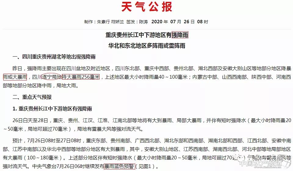| 中國水產(chǎn)頻道綜合報道, 2020年是“水慘年”?長江中下游強降雨又至,7省暴雨!華南高溫史無前例刷記錄,水產(chǎn)養(yǎng)殖緊急注意守護魚蝦塘! 新一輪暴雨將至,7省暴雨,3省大暴雨 進入7月下旬后半段,大陸進入了7月第7輪強降水中,暴雨不停歇,甚至開始有了新變化。根據(jù)實況看,這場由四川盆地引發(fā)的強降水,自西向東,自北向南,長江中下游一帶,梅雨再現(xiàn)。 官方最新預報:確定了,7省暴雨,3省大暴雨來了,局地還有256毫米特大暴雨,南方主暴雨區(qū)南下湖南。北方喜雨啟動,或連下3天,先華北再東北,局地大暴雨。我們先說降水實況,7月26日上午,中央氣象臺播報指出,25日四川東北部、重慶中西部、貴州北部、湖北西部、安徽大別山區(qū)、福建東部局地、黑龍江西北部局地,共計7省出現(xiàn)了暴雨。 其中四川、重慶、湖北3省下了大暴雨,降水量在100-175毫米左右,其中四川遂寧降水最強,局地最大降水256毫米,為特大暴雨級別。這下,我們確定了,新一輪強降水來了,7省暴雨波及南北,3省大暴雨,局地特大暴雨也來了,表明本輪暴雨進入新階段。而且官方最新預報:強降水還沒完,南方主雨帶要南移,湖南和蘇皖一帶為重點,北方喜雨也要開始。 中央氣象臺預計,7月26日08時至27日08時,內(nèi)蒙古中部、華北中北部、江淮、江漢、江南北部、西南地區(qū)東部和南部等地部分地區(qū)有中到大雨,其中,河北中部、江蘇中南部、安徽大別山地區(qū)、江西北部、湖北南部、湖南中西部和北部、貴州東南部、廣西西北部等地局部地區(qū)有暴雨或大暴雨(100~180毫米)。 明后天,強降雨范圍逐步縮減。預計7月27日08時至28日08時,江淮中南部、江漢南部、江南、華南西北部、華北北部、新疆伊犁河谷等地部分地區(qū)有中到大雨,其中,湖南中北部、廣西東北部等地局部地區(qū)有暴雨或大暴雨(100~200毫米)。 7月28日08時至29日08時,內(nèi)蒙古東部、東北地區(qū)大部、江南西部和東部、江漢南部、廣西中部、臺灣島、西藏南部和東部等地部分地區(qū)有中到大雨,其中,湖北東南部、湖南北部等地部分地區(qū)有暴雨(50~70毫米)。 目前,長江中下游及洞庭湖、鄱陽湖、太湖長時間維持高水位運行,今后三天長江中下游一帶還將有強降雨過程,需密切關(guān)注雨情、水情和汛情變化;同時,淮河干流上游、巢湖面雨量較大,需繼續(xù)加強防汛工作。安徽西部、湖北東北部、湖南西北部等地還需防范強降雨可能引發(fā)的地質(zhì)災害。 還沒完!安徽進入緊急防汛期! 7月25日,安徽省防汛抗旱指揮部發(fā)布關(guān)于長江淮河巢湖流域相關(guān)地區(qū)進入緊急防汛期的命令。 從《通知》了解到,當前,安徽省長江、淮河干流全線超警戒水位,巢湖超歷史最高水位,受持續(xù)高水位影響,堤防防守壓力加大,防汛抗洪形勢異常嚴峻。據(jù)氣象預報,7月27日前沿淮淮河以南仍多降水過程,防汛抗洪到了最緊要關(guān)頭。為全力以赴打贏防汛抗洪攻堅戰(zhàn)、持久戰(zhàn),確保長江、淮河、巢湖度汛安全,確保人民生命安全,根據(jù)《中華人民共和國防洪法》第四十一條規(guī)定,安徽省防汛抗旱指揮部宣布自7月25日12時起,安徽省長江、淮河、巢湖流域相關(guān)地區(qū)進入緊急防汛期。 航拍安徽巢湖高水位 華南高溫天氣史無前例,多地多新紀錄 中間涼,南北熱,高溫仍呈南北夾擊的態(tài)勢。其中,南方高溫范圍依然很大,江南、華南仍有大范圍高溫天氣。大城市中,南昌、福州、廣州、?谖磥硪恢芨邷厝諗(shù)將占一半以上,天氣悶熱。 7月24日,酷熱多日的東南沿海,迎來了高溫的巔峰。下午,臺灣臺北出現(xiàn)了39.7度的高溫,打破1897年以來的高溫紀錄;福建福州達40.4度,創(chuàng)今年新高,并且出現(xiàn)了史無前例的連續(xù)兩天40度;高溫較少的廣東廣州,在沒有臺風下沉氣流的影響下,海心沙的氣溫高達39.5度,也為歷史罕見。 7月24日福建最高氣溫分布圖,來自福建天氣 東南沿海的異常極端高溫,是副熱帶高壓長期盤踞的結(jié)果。這長期盤踞就有三個結(jié)果,一是長江暴雨和洪水,二是沒臺風,三就是東南沿海的高溫。而沒臺風,加劇了高溫,催生出了旱情。和長江流域暴雨極端偏多相反,廣東、廣西、海南、福建沿海降水極端偏少,已有最高級別的“特旱”出現(xiàn)。 7月24日全國旱情監(jiān)測圖,來自NCC 首次7月“空臺”?專家:不排除臺風集中生成或爆發(fā)的可能性! 從常年來看,7月進入臺風活躍期,已有不少臺風生成或登陸我國,像是2019年7月底前已有7個臺風生成。但是今年,臺風卻不按常理出牌,不僅“遲到”而且“出勤率”很低。截至目前,今年只有“黃蜂”和“鸚鵡”2個臺風生成,相比常年同期平均(6.5個)偏少4.5個,明顯偏少。 據(jù)中央氣象臺中期預報,7月月底前西北太平洋和南海仍無臺風生成。這意味著,今年7月有可能沒有1個臺風生成。 中國天氣網(wǎng)首席氣象分析師胡嘯表示,2014年盛夏8月在西北太平洋和南海上也出現(xiàn)了類似異常情況,沒有一個(西北太平洋及南海)臺風生成,開創(chuàng)了歷史上8月無臺風生成的先例。7月最多生成8個臺風,最少也有1個臺風,若今年7月沒有1個臺風出現(xiàn),那么將成為1949年以來7月首次“空臺”現(xiàn)象,這對于盛產(chǎn)臺風的月份來說,是非常罕見的。 “不過目前臺風個數(shù)偏少,并不意味著今年臺風威脅