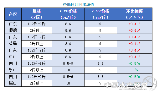 漲跌互現(xiàn),7月27日各地江團最新塘頭報價