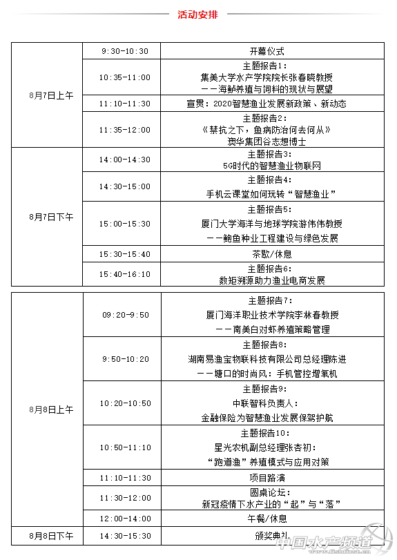 | 中國水產頻道報道, 在疫情相對穩定、可控的前提下,廈門迎來了重量級“水產養殖展覽會暨智慧漁業綠色發展峰會”。活動將大咖云集,包括行業主管部門領導、行業管理研究專家、知名大學教授、水產養殖領域的前沿技術專家、學者、技術服務人員、水產養殖戶、行業合作社、經銷商、供應商等踴躍參與,共同探討國家政策、行業發展方向、互動釋疑、高端前沿技術普及與交流。“2020廈門水產養殖展覽會暨智慧漁業綠色發展峰會”將把重點放在水產養殖新觀念、新產品、綠色生態、現代工廠化等應用技術方面,同時開展各種技術、應用、發展趨勢、商務交流,真正實現研發、生產、銷售、應用全供應鏈對接。“2020廈門水產養殖展覽會暨智慧漁業綠色發展峰會”即將為您提供超值服務! 觀眾登記 咨詢電話:0592-3984166,13720887447 |