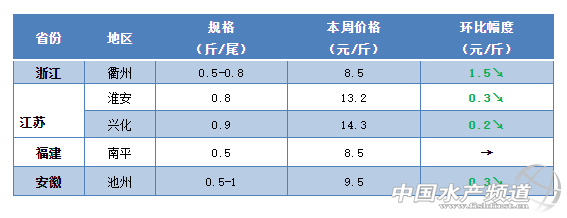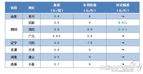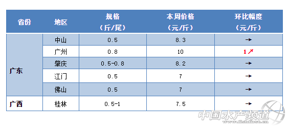 | 中國水產(chǎn)頻道原創(chuàng)報(bào)道, 新魚即將大量上市,全國行情要跌?大鯽魚缺貨,大魚下半年持續(xù)看漲! 文/水產(chǎn)前沿鄭鵬飛 一周要聞 華南鯽魚行情繼續(xù)看漲,廣州半斤鯽魚賣到10元/斤 近期江蘇新鯽上市沖擊市場,多地塘頭價(jià)出現(xiàn)下滑。據(jù)了解,目前湖北洪湖地區(qū)半斤的鯽魚塘頭賣7-8元/斤,下滑0.5元/斤;仙桃地區(qū)半斤起撿的鯽魚最新塘頭價(jià)賣8元/斤,較之前最高下滑2元/斤;浙江衢州地區(qū)最新塘頭價(jià)已經(jīng)從之前的10元/斤跌回到最低8元/斤,下滑1.5元/斤。 不過,目前大部分地區(qū)的鯽魚行情依然還是比較堅(jiān)挺。了解到,目前湖南地區(qū)鯽魚塘頭價(jià)繼續(xù)穩(wěn)中有,長沙地區(qū)半斤可以賣到6.8-7元/斤。湖北隨州地區(qū)半斤的鯽魚塘頭賣10.5元/斤,上漲0.7元/斤。由于近期高溫天氣出魚損耗加大,本周華南市場鯽魚塘頭價(jià)繼續(xù)呈現(xiàn)上升勢頭。據(jù)了解,目前廣州地區(qū)半斤以上的鯽魚最高可以賣到10元/斤,上漲1元/斤。有養(yǎng)殖戶表示,由于目前大鯽魚依然缺貨,而且大鯽魚上規(guī)格有沒那么快,預(yù)計(jì)后期大鯽魚行情繼續(xù)看漲。對于下半年的鯽魚行情您怎么看?歡迎留言分享! 四川地區(qū)鯽魚行情依然堅(jiān)挺,養(yǎng)殖戶表示后市看漲 廣西地區(qū)鯽魚依然吃香,后期行情看漲 各區(qū)域行情、報(bào)價(jià) 華南地區(qū) 由于近期高溫天氣導(dǎo)致出魚損耗加大,本周華南地區(qū)的鯽魚最新塘頭價(jià)繼續(xù)呈現(xiàn)上升勢頭。從養(yǎng)殖戶了解到,目前廣州地區(qū)半斤以上的鯽魚塘頭可以賣到10元/斤,上漲1元/斤;肇慶地區(qū)半斤的鯽魚最新塘頭價(jià)繼續(xù)穩(wěn)定在8.2元/斤,近期價(jià)格沒有出現(xiàn)明顯變動(dòng)。據(jù)了解,最近廣西地區(qū)的鯽魚行情不錯(cuò),養(yǎng)殖戶表示后市看漲,目前桂林地區(qū)半斤的鯽魚塘頭價(jià)繼續(xù)穩(wěn)定在7.5元/斤。不過,有流通商表示最近珠三角地區(qū)的鯽魚行情上升有點(diǎn)壓力了,有養(yǎng)殖戶甚至預(yù)測在2-3個(gè)月后行情可能會回落。 華中地區(qū) 最近華中地區(qū)的鯽魚塘頭價(jià)有漲有跌。目前江西、湖南等地整體上還是穩(wěn)中繼續(xù)有小幅上漲,最近江蘇鯽魚有點(diǎn)沖擊市場,近期湖北地區(qū)鯽魚行情波動(dòng)相對明顯,對于后期行情養(yǎng)殖戶也抱有完全不同的看法。據(jù)了解,目前湖北隨州地區(qū)半斤的鯽魚塘頭賣10.5元/斤,較之前上漲0.7元/斤,養(yǎng)殖戶表示最高可能也就這樣了;仙桃地區(qū)半斤起撿的鯽魚最新塘頭價(jià)賣8元/斤,因?yàn)榇篥a魚要上規(guī)格有沒那么快,養(yǎng)殖戶表示預(yù)計(jì)后期大鯽魚行情繼續(xù)看漲;洪湖地區(qū)半斤的鯽魚塘頭賣7-8元/斤,養(yǎng)殖戶表示下半年行情可能會回落。從養(yǎng)殖戶了解到,目前湖南常德鯽魚繼續(xù)穩(wěn)中有升,漲幅不大;長沙半斤的鯽魚塘頭賣6.8元/斤,基本維持上漲水平。 華東地區(qū) 近期華東地區(qū)今年的新魚上市增多,近期鯽魚行情有所回落;不過大鯽魚依然缺貨,行情相對穩(wěn)定。據(jù)了解,目前浙江衢州地區(qū)半斤的鯽魚最新塘頭價(jià)已經(jīng)從之前的10元/斤跌回到8-9元/斤之間,下滑1.5元/斤,養(yǎng)殖戶表示后期上漲有估計(jì)點(diǎn)難。 其他地區(qū) 本周西南地區(qū)的鯽魚塘頭價(jià)較之前也是有所回落,不過養(yǎng)殖戶繼續(xù)看好后期行情。從養(yǎng)殖戶了解到,目前四川德陽地區(qū)半斤的鯽魚塘頭賣到8.5元/斤,最高賣到9元/斤,行情還算堅(jiān)挺,養(yǎng)殖戶表示今年鯽魚后市看漲;成都地區(qū)半斤以上鯽魚最新報(bào)價(jià)9元/斤,較之前有一定的回落;自貢地區(qū)半斤的鯽魚最新報(bào)價(jià)8.5元/斤,繼續(xù)保持穩(wěn)定。從流通商了解到,目前甘肅蘭州市場半斤以上的鯽魚最新報(bào)價(jià)繼續(xù)保持在10元/斤,近期行情相對穩(wěn)定。 |
