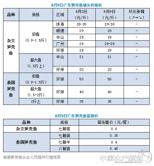| 中國水產頻道原創報道, 這一等,下次漲價又是何時? 文/ 水產前沿實習編輯 許鈺淇 筍殼魚上周行情還處于微漲中,關于價格空間,上周筆者也預計要看接下來的新魚規模。據本周筆者了解的大多數地區,價格基本趨向穩定,雜交筍殼魚28~29的價格是最普遍的。要知道,這個價格已經維持了近兩周了,那么接下來又會是什么樣的變化趨勢呢? 據行業人士爆料,近來養殖戶出魚的熱情已經逐漸恢復,部分經濟緊張的養殖戶已經開始找魚中商量出魚計劃。一方面是好不容易等來的好市,價格升級戰打了一個多月,最近眼看價格基本趨向穩定。還有一方面原因是,面臨著天氣高溫,臺風季也開始到來的情況,給養殖管理上面增加了不少難度和不確定性,在高溫期的時候如果能夠出部分魚也算是減輕了養殖風險。但是養殖大戶們還處于觀望價格的狀態,有流通商說如果價格還是維穩,大戶一旦出魚,恐怕市場會有稍許跌價情況出現。這一等,下次漲價又是何時? 關于價格趨穩還有另一跡象,最近可以在市場上看到新魚流通的身影,經過確認,流通商表示泰國筍殼魚和雜交筍殼魚的新魚確實有少量逐漸上市。但是流通商也表示走貨的時候還是更偏愛走舊魚,因為目前的新魚耐受力較差,不耐運輸。 |