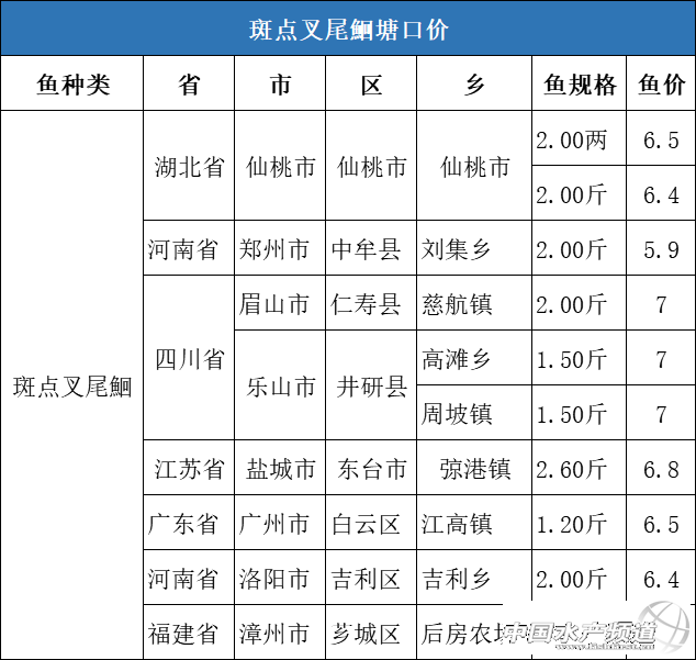 | 中國水產頻道報道, 通威農牧 ,作者張梅 斑點叉尾鮰 數據分析:本周全國斑點叉尾鮰均價為6.57元/斤,環比上漲0.46%。 華東戰區:江蘇地區斑點叉尾鮰魚因天氣太熱,養殖戶賣魚較少,價格與上周持平。 華北戰區:河南地區受黃河灘禁養政策實施,養殖戶集中出魚,價格較上周下跌0.2元/斤。 華中地區:湖北地區叉尾鮰供需平衡,價格與上周持平。 華西地區:四川地區存塘還有5-6成,近期流通加快,價格與上周持平。 華南地區:廣東市場流通穩定,價格與上周持平。(本文轉自【通威農牧】。如有版權問題,敬請聯系wx@fishfirst.cn。) |