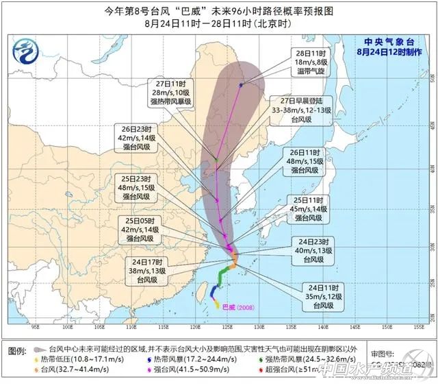 | 中國(guó)水產(chǎn)頻道綜合報(bào)道, 臺(tái)風(fēng)“巴威”風(fēng)眼動(dòng)態(tài)圖片 緊急!又大又強(qiáng),巴威可能登陸我國(guó)! 前兩天,8號(hào)臺(tái)風(fēng)都是慢悠悠的在東海上往東走,看起來(lái)要遠(yuǎn)離我國(guó),去日本或者韓國(guó)了,所有人都松了一口氣,中央氣象臺(tái)還說(shuō)登陸我國(guó)可能性很小。不過(guò)8月24日早上一看,巴威竟然停止往東走,改成向北走了,未來(lái)還可能從北轉(zhuǎn)為北偏西。可以說(shuō),巴威急轉(zhuǎn)彎了,準(zhǔn)備西折了! 巴威往西走,對(duì)我國(guó)當(dāng)然是壞事。從地圖上看就可以看得出來(lái),我國(guó)在西邊,日本韓國(guó)朝鮮在東邊。巴威西折,就意味著臺(tái)風(fēng)要靠近我國(guó),而離日韓更遠(yuǎn)!由于巴威又大又強(qiáng),它偏西之后,對(duì)我國(guó)的影響就會(huì)加大! 事實(shí)上也正是如此。巴威西折前后,主流超級(jí)計(jì)算機(jī)模式都大幅西調(diào)巴威的路徑,認(rèn)為它的最大可能,已不是先登陸韓國(guó),再縱穿整個(gè)朝鮮半島,然后來(lái)我國(guó)--如果是這個(gè)路徑的話,巴威的能量和風(fēng)雨都會(huì)被朝鮮半島截留,到我國(guó)就是二手臺(tái)風(fēng)了。 但現(xiàn)在,按照主流超級(jí)計(jì)算機(jī)模式的說(shuō)法,巴威進(jìn)入黃海直沖我國(guó),成為一手臺(tái)風(fēng)的可能性更大,那么,臺(tái)風(fēng)的能量將會(huì)不受陸地削弱,直接登上山東、遼寧的陸地,那么“沖勁”肯定會(huì)更大,風(fēng)雨也會(huì)更加危險(xiǎn)了。 根據(jù)最新的中央氣象臺(tái)預(yù)報(bào),巴威的最大可能登陸地,確實(shí)已經(jīng)從朝鮮半島改成了遼寧,中央氣象臺(tái)預(yù)計(jì)登陸時(shí)的強(qiáng)度為12-13級(jí)的臺(tái)風(fēng)級(jí)。別小看這個(gè),對(duì)東北來(lái)說(shuō),臺(tái)風(fēng)級(jí)別就是破紀(jì)錄的了,危害非常大了。請(qǐng)東北老鐵們務(wù)必提高警惕,在8月26日前做好防臺(tái)準(zhǔn)備。 最強(qiáng)風(fēng)力16級(jí)!中央氣象臺(tái)8月24日10時(shí)繼續(xù)發(fā)布臺(tái)風(fēng)黃色預(yù)警 今年第8號(hào)臺(tái)風(fēng)“巴威”的中心今天(24日)上午8點(diǎn)鐘位于東海南部海面,距韓國(guó)濟(jì)州偏南方大約660公里,就是北緯27.6度、東經(jīng)126.2度,中心附近最大風(fēng)力有12級(jí)(33米/秒),中心附近最低氣壓為975百帕,七級(jí)風(fēng)圈半徑150-260公里,十級(jí)風(fēng)圈半徑40-80公里。 預(yù)計(jì)“巴威”將以每小時(shí)10-15公里的速度向偏北方向移動(dòng),強(qiáng)度繼續(xù)加強(qiáng),最強(qiáng)可達(dá)強(qiáng)臺(tái)風(fēng)級(jí)(45-50米/秒,14-15級(jí));26日早晨將移入黃海南部,并向朝鮮半島西北部到我國(guó)山東半島一帶沿海靠近,強(qiáng)度逐漸減弱。 最強(qiáng)風(fēng)力達(dá)16級(jí)以上 一、東海中東部海域出現(xiàn)了8~10級(jí)大風(fēng) 24日08時(shí)至14時(shí),東海中東部海域出現(xiàn)了8~10級(jí)、陣風(fēng)11~12級(jí)的大風(fēng),南海東北部海域、巴士海峽出現(xiàn)了6~7級(jí)、陣風(fēng)8級(jí)的西南風(fēng),渤海、渤海海峽出現(xiàn)了8~9級(jí)雷暴大風(fēng)。渤海海峽、黃海北部海域的能見度不足10公里。 二、東海及黃海將有8~11級(jí)大風(fēng) 預(yù)計(jì),受臺(tái)風(fēng)“巴威”影響,24日夜間至27日早晨,黃海大部海域、東海大部海域?qū)⒂?~11級(jí)大風(fēng),其中臺(tái)風(fēng)中心經(jīng)過(guò)的附近海域風(fēng)力可達(dá)12~15級(jí)、陣風(fēng)16級(jí)以上。24日夜間至25日早晨,山東半島沿岸海域、黃海北部海域?qū)⒂?~10級(jí)雷暴大風(fēng)。 未來(lái)三天具體預(yù)報(bào)如下: 24日20時(shí)至25日20時(shí),東海部分海域?qū)⒂?~11級(jí)大風(fēng),臺(tái)風(fēng)中心經(jīng)過(guò)的附近海域風(fēng)力可達(dá)12~15級(jí)、陣風(fēng)16級(jí)以上,黃海北部海域?qū)⒂?~7級(jí)、陣風(fēng)8級(jí)的西南風(fēng)轉(zhuǎn)4~5級(jí)、陣風(fēng)6級(jí)的東北風(fēng),黃海中部海域?qū)⒂?~6級(jí)、陣風(fēng)7級(jí)的偏南風(fēng)轉(zhuǎn)偏東風(fēng),黃海南部海域?qū)⒂?~7級(jí)、陣風(fēng)8級(jí)的偏東風(fēng),南海東北部海域、北部灣將有5~6級(jí)、陣風(fēng)7級(jí)的偏西風(fēng)或西南風(fēng),臺(tái)灣海峽、臺(tái)灣以東洋面、巴士海峽將有6~7級(jí)、陣風(fēng)8級(jí)的西南風(fēng)(圖1)。另外,24日20時(shí)至25日08時(shí),山東半島沿岸海域、黃海北部海域?qū)⒂?~10級(jí)雷暴大風(fēng)。 25日20時(shí)至26日20時(shí),黃海中部和南部海域、東海北部海域?qū)⒂?~11級(jí)大風(fēng),臺(tái)風(fēng)中心經(jīng)過(guò)的附近海域風(fēng)力可達(dá)12~15級(jí)、陣風(fēng)16級(jí)以上,渤海、渤海海峽將有4~6級(jí)、陣風(fēng)7級(jí)的偏北到東北風(fēng),黃海北部海域?qū)⒂?~5級(jí)、陣風(fēng)6級(jí)的東北風(fēng)轉(zhuǎn)6~7級(jí)、陣風(fēng)8級(jí)的偏東風(fēng),東海南部海域、臺(tái)灣海峽、巴士海峽、南海東北部和中西部海域、臺(tái)灣以東洋面將有5~7級(jí)、陣風(fēng)8級(jí)的西南風(fēng),南海西部海域?qū)⒂?~6級(jí)、陣風(fēng)7級(jí)的西南風(fēng)。 臺(tái)風(fēng)“巴威”將在浙江、上海和江蘇掀起大浪 今年第8號(hào)臺(tái)風(fēng)“巴威”(臺(tái)風(fēng)級(jí))的
