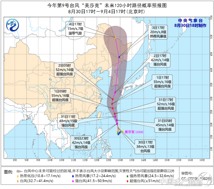 | 中國水產頻道綜合報道, 急急急!“風王”來了!17級以上的美莎克將帶來風暴潮+雷暴狂風!福建、浙江、東北等多地要緊急關注 危急!巨無霸!17級以上!今年以來的“風王”美莎克來了! 今年第9號臺風“美莎克”(Maysak)臺風“美莎克”已于今晨加強為臺風級,今天(30日)下午5點鐘中心位于日本沖繩那霸偏南方大約830公里的西北太平洋洋面上,就是北緯18.9度、東經129.0度,中心附近最大風力有13級(38米/秒,臺風級),中心最低氣壓為965百帕,七級風圈半徑150-300公里,十級風圈半徑90公里,十二級風圈半徑40公里。 預計,“美莎克”將以每小時25公里左右的速度向偏北方向移動,強度繼續增強,并逐漸向琉球群島南部海域靠近,9月1日凌晨或早晨將移入東海東南部,最強可達超強臺風級(52-58米/秒,16-17級);之后在東海北部轉向北偏東方向移動,趨向朝鮮半島南部,強度逐漸減弱。 預計,受臺風“美莎克”影響,8月30日夜間至9月2日白天,東海大部海域、黃海中部和南部海域將有7~9級大風,其中東海東部和黃海東南部海域的風力可達10~13級,臺風中心經過的附近海域的風力可達14~16級、陣風17級以上。8月30日夜間至31日白天,渤海海峽、山東半島沿岸海域將有8~10級雷暴大風。 未來三天具體預報如下: 30日20時至31日20時,東海南部海域、臺灣以東洋面、臺灣海峽將有5~7級、陣風8級東北風,其中東海東南部海域風力可達7~9級、陣風10~11級。另外,渤海海峽、山東半島沿岸海域將有8~10級雷暴大風。 8月31日20時至9月1日20時,東海大部海域將有7~9級大風,其中東海東部海域風力可達10~13級,臺風中心經過附近海域的風力可達14~16級、陣風17級以上,巴士海峽、臺灣以東洋面將有6~8級、陣風9級偏西到西南風。 9月1日20時至2日20時,東海大部海域、黃海中部和南部海域將有7~9級大風,其中東海東部海域、黃海東南部海域風力可達10~13級,臺風中心經過附近海域的風力可達14~16級、陣風17級以上,臺灣以東洋面、巴士海峽將有5~6級、陣風7級的西南風。 未來4~7天天氣展望 預計,受“美莎克”影響,9月2日夜間,黃海東南部海域和東海東北部海域將有8~9級、陣風10~11級大風,其中東海東北部的部分海域風力可達12~13級、陣風14~15級;3日白天,黃海北部和中部海域將有6~7級、陣風8級西北風。 天氣影響和關注重點 預計,8月30日夜間至9月2日白天,東海大部海域、黃海中部和南部海域將有7~9級大風,其中東海東部和黃海東南部海域的風力可達10~13級,臺風中心經過的附近海域的風力可達14~16級、陣風17級以上。8月30日夜間至31日白天,渤海海峽、山東半島沿岸海域將有8~10級雷暴大風。受大風影響海域航行、作業的船舶,需注意航行安全。 “風王”美莎克將于巔峰期進入東海,威脅我國 8月30日,位于西太平洋上的臺風美莎克進一步發展,從風云4號高清可見光衛星云圖上看,它的螺旋性進一步加強,大量的水汽朝著中心涌入,核心區的云區變得更加緊密,結構也變得更加完善,這種變化意味著,在超高海水溫度的支持下,臺風美莎克正變得越來越強大,下午14點,它已經是13級臺風級。 然而,臺風美莎克的增強還遠未到結束的時候,從目前來看,臺風美莎克還將持續北上,逐漸向琉球群島附近洋面以及東海靠近,強度還將繼續加強,從中央氣象臺的預測上看,中央氣象臺認為它可能增強至超強臺風級,這也將是今年首個超強臺風級,中央氣象臺的預測中指出,臺風最強可達52-58米/秒,16-17級,這將是今年以來的最強“風王”。 這最強“風王”的預測可并非空穴來風,雖然臺風美莎克接下來將持續北上,但它所經過的區域基本上都是海水能量特別充沛的區域,即便是來到琉球群島附近,這里是西太平洋最強大的黑潮暖流的影響區域,海水能量也十分充足,因此它增強到最強“風王”可以說是意料之中。 不過,從目前來看,這危險的“風王”雖然要進入東海,但直接登陸我國的可能性比較低,對我國華東地區的最大影響應該是外圍風圈影響以及下沉氣流影響,但在臺風美莎克北上后,它有可能一直北進到我國東北地區,雖然它北進到東北的時候風力可能已經相對較弱,但帶來的雨水可能會相當兇猛,這對于東北的農業而言也是不利因素,依然要提高警惕。 臺風“美莎克”強度逐漸增強,發布近海海浪黃色警報 今年第9號臺風“美莎克”(臺風級)的中心今天(30日)14時位于日本沖繩那霸偏南方約870公里的西北太平洋洋面上。 預計,“美莎克”將向偏北方向移動,逐漸向琉球群島南部海域靠近,將于9月1日凌晨或早晨移入東海東南部海面,強度繼續增強。 國家海洋預報臺,今天下午針對“美莎克”發布第一期海浪黃色警報 海浪黃色警報 預計8月31日白天,東海東南部、釣魚島附近海域將出現4到6米的巨浪到狂浪區,近海海浪預警級別為黃色。提醒在上述海域作業的船只注意安全,沿海各有關單位提前采取防浪避浪措施。 風暴潮消息 國家海洋預報臺今天還發布風暴潮消息。 受臺風“美莎克”的影響,預計9月1日到2日,我國浙江、上海、江蘇沿海將先后出現一次臺風風暴潮過程。影響期間上述沿海正處天文大潮期,請及時關注我臺后續風暴潮預警報。 未來兩天近海預報 預計明天,渤海、黃海北部有0.7到1.3米的輕浪到中浪;黃海南部有1.3到2米的中浪;東海北部有1.5到2.5米的中浪到大浪區;東海南部、釣魚島附近海域、臺灣以東洋面有8到12米的狂浪到狂濤區;臺灣海峽有1.
