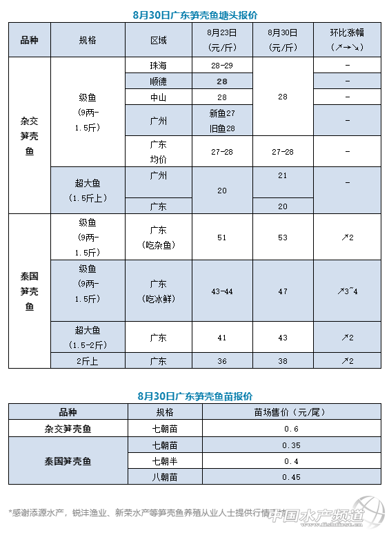 | 中國水產(chǎn)頻道原創(chuàng)報道, 泰筍一周最高漲4元!冰鮮替代的價格也開始猛沖 文/ 水產(chǎn)前沿實習(xí)編輯 許鈺淇 喂魚仔的泰筍價格實在貴,冰鮮替代開始大漲 上周的筍殼魚報價一文發(fā)出之后,開始有許多養(yǎng)殖戶給筆者留言,其中一名江門泰筍養(yǎng)殖戶告訴筆者“筍殼魚遇到現(xiàn)在的臺風(fēng)季節(jié),天氣變化大,對養(yǎng)殖戶來說是一大技術(shù)難關(guān),生病的魚多,一開始生起病就很難控制,死亡嚴重。” “太難養(yǎng)了,養(yǎng)殖周期太長,生病又難搞。”從養(yǎng)殖戶的話中可以看出今年的泰筍養(yǎng)殖情況真是不妙,低產(chǎn)量導(dǎo)致價格一直走高。從目前來看,這一周的泰筍價格底線又被抬高兩元,其中吃冰鮮的泰筍漲價最猛,最高直漲4元!為究其原因,筆者向添源水產(chǎn)請教。“還是價格的問題,泰筍太貴了,吃魚仔的更貴,大家就將目標(biāo)轉(zhuǎn)向吃冰鮮的泰筍,結(jié)果導(dǎo)致現(xiàn)在吃冰鮮的泰筍猛漲價。”問及養(yǎng)殖戶對接下來泰筍行情的看法,養(yǎng)殖戶普遍說還會漲價,而流通商面對目前市價波動大且還要漲價的泰筍則開始抑郁了。不過九月即將到來,泰筍新魚也將在九月亮相,新魚到時會對泰筍價格緩沖多少呢?下周日繼續(xù)一起關(guān)注筍殼魚價格解析! 雜交筍殼魚價格穩(wěn)住在28 今天一早開始收集各地行情信息,養(yǎng)殖戶和流通商都是聲稱在28左右,價格上面并無多大波動。對于雜交筍殼魚今年的行情是否還有空間,筆者請教了新榮水產(chǎn)傅總,“基本今年價格就穩(wěn)定在27-28了,中秋節(jié)前可能還有機會,我更看好的是明年筍殼魚市場。” |