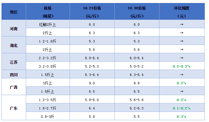 文/ 水產前沿 葉豐齊 2020年鮰魚行情走勢 整體行情綜述 中國水產頻道原創報道,多個產區鮰魚價格繼續下調,局部地區艱難維持。河南2斤上規格黑鮰與紅鮰價格依然保持穩定;湖北2斤上和1.2斤上黑鮰以及1.5斤上水庫魚價格皆與上周一致;江蘇鹽城2.2-3.2斤(平均2.5-2.6斤)規格價格持平,3.2-3.8斤(平均3.5-3.6斤)規格鮰魚下調0.2-0.3元/斤;四川樂山1.5斤上規格和3斤上超大規格魚價格皆保持;廣西3斤上網箱魚價下調0.2-0.5元/斤,1.5斤上池塘魚保持上周價格;廣東0.8-3斤工廠統貨較下調0.3元/斤,1.55-2.7斤規格下調0.1-0.2元/斤,1.2-3.5斤規格市場貨再下調0.2元/斤。 各產地行情分析 河南地區:價低養戶惜售,目前僅少量投喂,逐漸準備停料過冬,開春前不再動網。2斤上規格黑鮰塘頭價6.3元/斤,1.8-2斤規格紅鮰6元/斤,價格皆保持不變。 湖北地區:市場價格太低,基本沒人出魚,本地魚車轉戰其他市場,行情暫時不變。仙桃市1.2-1.8斤規格黑鮰5.3元/斤,2-4斤黑鮰塘頭價5.8元/斤,1.5斤上水庫網箱黑鮰6.5元/斤,皆同上周價格。 江蘇地區:魚多市場擁堵,心痛,大戶繼續甩賣超規格魚,此規格行情繼續下調。北京、山東市場的2.2-3.2斤(平均2.5-2.6斤)規格鮰魚6.4元/斤,個別有6.6元/斤,最低低至6元/斤,保持上周價格;走西南西北地區的3.2-3.8斤(平均3.5-3.6斤)規格大約5.2元/斤,環比上周下調0.1元/斤,超規格的5元/斤,下調0.2-0.3元/斤。 四川地區:據悉有較多外地魚入川競爭,本地出魚的養戶不多,價格保持穩定。樂山1.5斤以上規格黑鮰塘頭價6.3-6.4元/斤,環比上周下調0.1元/斤;銷往云貴市場的3斤上超大規格魚6.7元/斤,同上周價格。 廣西地區:行情波動不算大,目前基本只出網箱魚,1.5斤起抓;而池塘小規格魚多,沒什么人出;工廠價格則保持;下個月開始今年池塘新魚基本都可大量上市,估計會對后市行情有一些影響。網箱叉尾2.3斤上平3.2斤8.8元/斤,環比上周下調0.2-0.5元/斤,百色8.3元/斤,保存上周價格;1.5斤上網箱魚7-7.2元/斤;1.2斤上池塘魚6.5元/斤,同上周價格,個別地區仍能保持6.8元/斤;工廠收購1-1.8斤規格6-6.3元/斤無加成,同上周行情;1.8-2.6斤規格6.4元/斤,下調0.2元/斤,3成6.9元/斤,上調0.1元/斤;2.6-3斤規格6元/斤,環比上周下調0.1元/斤。 廣東地區:魚車較少,出魚要排隊預約,訂魚不定價,市場行情相應下調。加工廠方面,0.8-3斤統貨塘頭價5.5元/斤,環比上周下調0.3元/斤。市場方面,1.2-3.5斤規格塘頭價5.6-5.8元/斤,環比上周下調0.2元/斤;1.55-2.7斤規格6.2-6.3元/斤,環比上周下調0.1-0.2元/斤。 鮰魚報價 說明:1.上述價格及行情分析僅供參考,市場有風險,入市需謹慎 2.塘頭價指從池塘抓魚價格,紅鮰指紅色斑點叉尾鮰,黑鮰指黑色斑點叉尾鮰 編號:hybj2020-10-30 特別感謝龔旺先生對本文的支持! |