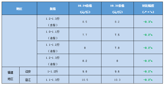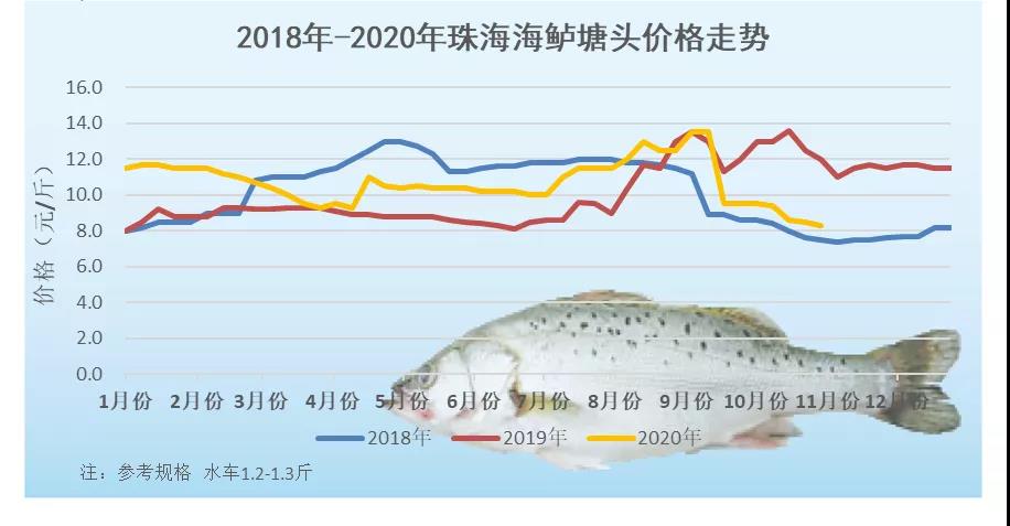 文/ 水產前沿 陳曉慶 感謝進才水產供圖 一周行情分析 中國水產頻道原創報道,珠海海鱸:10月份最后一周,由于海鱸新魚存塘的繼續增多,塘頭價格繼續下滑。本周珠海海鱸水車1.2斤-1.3斤規格的報價8.2-8.3元/斤,而冰車1斤-1.1斤規格只收7.5元/斤,1.1斤-1.2斤規格收7.8元/斤,1.2斤-1.3斤收8元/斤。現在小規格的新魚上市量越來越大,水車冰車的價格相差并不大。 目前珠海新魚出魚量依舊較大,養殖戶年尾要交塘租以及投苗都需要資金,欠款的飼料,年底也需要結賬。另外一個方面,近期換季魚的病害增多,養殖戶出魚變得更加迫切。去年海鱸投苗量增加,且成活率高,造成年底海鱸整體存塘量比去年要高出很多,養殖戶都不看好后市,這也是目前出魚量大的原因之一。 福建海鱸:受珠海海鱸跌價的影響,目前福建的涵江海鱸價格10.3元/斤,詔安海鱸9.6元/斤,相比上周也有所下滑。 價格走勢 10月31日塘頭報價 說明:上述價格及行情分析僅供參考,市場有風險,入市需謹慎 編號:hlbj2020-10-31 |