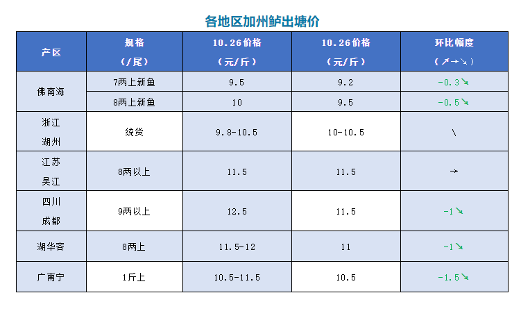 | 中國水產頻道原創報道, 文/圖何氏水產、水產前沿李靜 加州鱸 1、本周佛山加州鱸塘頭價格持續下跌,價格接近成本價,部分養戶惜售,出魚積極性高,但周邊產區由于要清塘出魚十分積極。7兩上報價9.2元/斤,比上周下跌了0.3元/斤,8兩上報價9.5元/斤,比上周也下跌了0.5元/斤,具體還是看魚頭定價,魚頭越小價格越便宜。目前廣東魚價還是比亂的,成交價格也會按魚頭的大小,及質量的情況上下浮動。現在新魚存塘量還很多,部分魚塘的魚出現花身、爛身的情況,價格會更低。預計接下來價格暫時沒有上漲空間。 2、受到廣東鱸魚價格下跌的影響,湖州本周統貨報價10-10.5元/斤,與上周價格差不多,具體看條形、炮頭大小定價。價格低迷,養殖戶出魚積極性一般。 3、江蘇吳江本周價格與上周一樣,8兩上報價11.5元/斤。價格會根據魚頭大小及規格比例多少略有調整。當地很少出魚了,流通商多到周邊收魚。 4、四川成都今天報價9兩上11.5元/斤,比上周也下跌了1元/斤。價格比其它地方要高,養戶出魚積極性高,但市場走量一般,本地銷售為主。 5、湖南華容本周價格比上周下跌了1元/斤,8兩上報價是11元/斤。目前達到上市的規格不多,出魚量少。 6、廣西南寧本周價格與上周相比也下跌了1.5元/斤,報價是10.5元/斤,當地養戶出魚積極性較高。 |