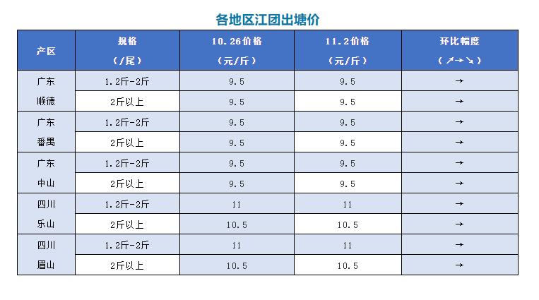 保持穩定,2020年11月2日各地江團最新塘頭報價