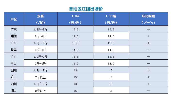 | 中國水產(chǎn)頻道原創(chuàng)報(bào)道, 文/圖 何氏水產(chǎn)、鱖鱸前沿 江團(tuán) 本周廣東江團(tuán)價格穩(wěn)定,1.2-2斤的報(bào)價13.5元/斤,跟上周一樣,2-4斤的報(bào)價14元/斤,保持不變。銷量跟上周差不多,預(yù)計(jì)接下來價格或?qū)⒎(wěn)定一段時間。 四川江團(tuán)本周價格,1.2-2斤報(bào)價13元/斤,保持穩(wěn)定;2斤以上報(bào)價15元/斤,跟上周一樣。銷量跟上周差不多,預(yù)計(jì)價格或?qū)⒎(wěn)定一段時間。 |