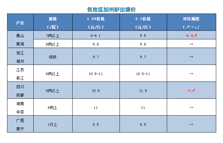 | 中國水產(chǎn)頻道原創(chuàng)報(bào)道, 文/圖 何氏水產(chǎn)、水產(chǎn)前沿李靜 加州鱸 1、本周佛山加州鱸價(jià)格穩(wěn)中有升,7兩上報(bào)價(jià)9.5元/斤,比上周漲了0.4元/斤;8兩上報(bào)價(jià)9.8元/斤,保持穩(wěn)定;具體還是看魚頭定價(jià),價(jià)格按上車規(guī)格、塘魚質(zhì)量情況略有調(diào)整。目前達(dá)上市規(guī)格鱸魚存塘相對較多,部分養(yǎng)戶要年底交租、還貸款等,趁氣溫回升期間出魚,加上部分拋售大肚魚,量大但市場流通緩慢。春節(jié)前量也有所提升,但后市行情尚不明朗。 2、湖州本周統(tǒng)貨報(bào)價(jià)9.7元/斤,跟上周一樣,具體看條形、炮頭大小定價(jià)。 3、江蘇吳江本周價(jià)格跟上周一樣,8兩上報(bào)價(jià)10.5-11元/斤。價(jià)格會(huì)根據(jù)魚頭大小及規(guī)格比例多少略有調(diào)整。本地慣養(yǎng)老口,年前基本不出魚了。 4、四川成都今天報(bào)價(jià)8兩上11.5元/斤,比上周漲了1元/斤;9兩上12元/斤。 5、湖南華容本周價(jià)格保持穩(wěn)定,9兩上報(bào)價(jià)是11元/斤。當(dāng)?shù)剌^多存塘魚已達(dá)上市規(guī)格,但市場行情較差,銷量不多。 6、廣西南寧本周價(jià)格跟上周一樣,報(bào)價(jià)是9.5元/斤。市場流通一般,出魚量少。 |