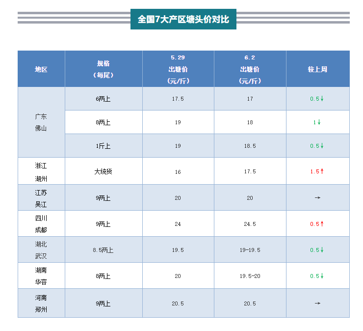 | 中國水產頻道原創報道, 受疫情管控影響,廣東發往外省市場的魚車影響很大 文/ 水產前沿 葉豐齊 圖/ 杰大飼料 一周行情綜述 受疫情管控影響,廣東發往外省市場的魚車影響很大。在疫情影響下,市場收魚量明顯減少,廣東本地市場消化力較為有限,8兩上舊魚下調1元/斤,1斤上下調0.5元/斤。同時,華中產區鱸魚行情直接受到廣東魚價下滑影響,出現了0.5元的跌幅;不過,亦因為廣東魚目前無法供應西南市場,需由華中魚暫替,其價格整體仍維持相對高位。由于市場依然供不應求,四川本地鱸價近期不斷上漲,較上周三有高達1.5元/斤的漲幅。華東方面,浙江產區老魚緊缺,大統貨塘頭報價較上周上調1.5元/斤;江蘇吳江目前基本能夠滿足華東市場的消費需求,大規格標魚報價因貨源較缺而保持平穩,但統貨價格受廣東魚價影響出現1元的跌幅。河南產區鱸魚行情則維持穩定,暫無明顯動態變化。 全國7大產區塘頭價對比 廣東佛山:主產區塘頭價8兩上舊魚18元/斤,1斤上18.5元/斤,極個別6兩上、魚頭1.8斤秋魚17元/斤左右。有業者反映,最近雨水頻繁,出魚硬骨現象減少,賣魚的也比較多,魚中要分規格挑魚。目前,南海沙頭尚有一些舊魚存塘;由于近期疫情反復,部分餐飲堂食受到影響,而且1個月后新魚逐漸上市,擔憂后市漲價空間進一步縮小,目前部分舊魚養戶出魚有所增加。加上外地魚車減少,廣東本地消化力有限,一時供過于求,使得市場較為疲軟,導致魚價下行,近兩天也帶來部分原定出魚養殖戶推遲出魚時間,繼續觀望后市! 浙江湖州:8成大統貨報價17.5元/斤,上調1.5元/斤;主產區老魚所剩無幾,如今塘頭交易甚少。菱湖及周邊嘉興、紹興等地新魚普遍要到8月才大量上市,其他外圍區域目前也沒有多少規格魚供應,行情整體平穩。 江蘇吳江:8兩上標魚19-19.5元/斤,9兩上20元/斤,暫時維持上周行情;而8成統貨17元/斤,9成17.5元/斤,較上周下調1元/斤。一方面受廣東魚價下滑影響,另一方本地魚存量目前依然能滿足華東市場,并未到緊缺狀態,對于高位價,終端消費市場或許不太買賬,導致近期流通有所受限,雖然一天仍有20萬斤以上的量,但魚價略起波瀾。 四川成都:8兩上21.5元/斤,9兩上24.5元/斤,鱸魚行情持續上漲。據了解,成都市場工作日一天需求5萬斤,而周末一天需求7萬斤。因為本地存塘老口魚目前大約還有2-3成,須通過部分外地貨源滿足。由于廣東魚暫時無法入川,華中產區每天供應3萬斤左右。 湖南華容:8兩上報價19.5-20元/斤,較上周有0.5元的下滑幅度。作為毗鄰省份,湖南直接受到廣東魚價波動沖擊,行情稍有下調,促使一些養戶積極出售,每日出魚量達到4萬斤左右,其中3萬多斤外銷西南地區,余下的則由本地市場消化。有部分養戶仍在觀望后市價格走勢,據悉老口魚還有接近一半的存塘量。 湖北武漢:8.5兩上規格塘頭價19-19.5元/斤,較上周價格下調0.5元/斤。受廣東、湖南以及江蘇降價影響,本地市場稍為疲軟,魚價略有松動回落;部分養戶出魚較為積極,每日流通量仍接近4萬斤。而部分看好后市的,現在出魚意愿依然一般,行情應會在相對平穩中上下輕微波動。 河南鄭州:9兩上規格塘頭正價20.5元/斤,條形較好、炮頭較大的21元/斤,而規格偏小或大肚魚20元/斤,皆維持上周價格。除少數大肚的臺灣鱸魚,本地鱸魚產后掉膘促使養戶惜售,市場供求目前相對平衡,行情暫時穩定在相對高位。 |