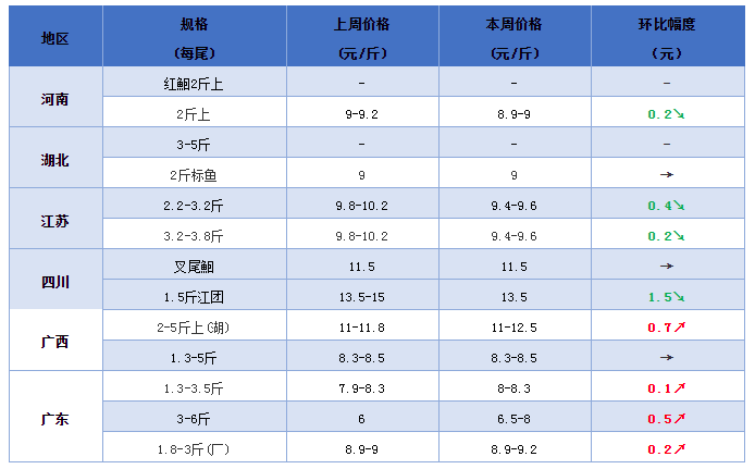 文/ 水產前沿 曾鈴程 江蘇北京貨2020-2021價格走勢 貴州本地貨已經13元/斤 水產前沿網原創報道,河南地區價格下跌。黑鮰塘頭價大小一個價8.9-9元/斤;紅鮰1.5斤9.5元/斤。天津等地,下跌,2.2-5斤統貨10.5元/斤。 江蘇等地鮰魚,價格下跌。一方面疫情對有些魚車有影響,另一方面臺風已經過去,天氣好起來,又需要出魚。目前2-3斤北京貨9.4-9.6元/斤;3斤以上超大魚9.4-9.6元/斤。 華中地區湖北黑鮰,出魚很少,價格穩定為主。仙桃,出魚少,1.8-3.5斤9元/斤左右。湖南黑鮰,穩定,1.8-3斤9.5元/斤,3斤上10元/斤。 江西地區,網箱鮰魚,價格上漲,2-5斤,11元/斤。 四川鮰魚。叉尾黑鮰,穩定,11.5元/斤;紅鮰,穩定,11.5元/斤。江團,價格下跌,1.5-2.2斤,13.5元/斤。 福建鮰魚。漳州,塘魚,上漲,1.8-3.2斤,8.5元/斤,1.5-3.2斤,8元/斤。龍巖,網箱魚,穩定,1.3-3斤,9.5元/斤;1.8-3.5斤,9.8元/斤;2.5-6斤,10.3-10.5元/斤。 云南地區鮰魚,水庫魚,12-12.5元/斤。 廣東鮰魚,價格微漲,超大魚上漲。珠三角,1.3-3.5斤,8-8.3元/斤(8元/斤為主);1.8-3.2斤,8.9-9.2元/斤(加工廠價);3-6斤,6.5-8元/斤(8元/斤需要萬斤起,貨少)。切片魚開收,0.6-7斤,7.4-7.5元/斤。 廣西鮰魚,市場貨微漲,網箱魚上漲。市場1.3-5斤,8.3-8.5元/斤;2-5斤,9.8-10元/斤。加工廠1-1.8斤,2.6-3斤,7.3元/斤;1.8-2.6斤,9.5元/斤。網箱鮰魚,2~5斤,2~6斤,11-12.5元/斤;條型好規格平3.5斤12.5元/斤,平3斤12元/斤。 鮰魚最新價格 編號:jybj2021-8-6 說明:上述價格及行情分析僅供參考,市場有風險,入市需謹慎 養得好也要賣得好,特別感謝各位熱心朋友的信息支持和指點幫助! |