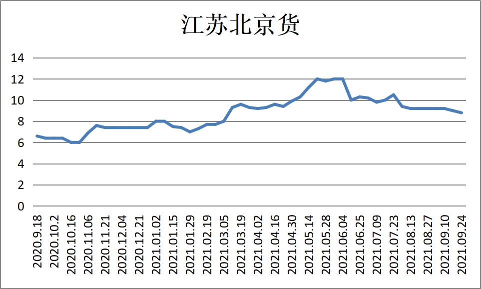 文/ 水產前沿 曾鈴程 江蘇北京貨2020-2021價格走勢 水產前沿網原創報道,河南地區穩定。黑鮰塘頭價,小規格1斤起,7.4元/斤;1.8斤起,8.3-8.4元/斤;紅鮰2斤10.8-11元/斤。山東地區,黑鮰,3斤上,8.3-8.4元/斤。 江蘇等地鮰魚,下跌2毛。目前2-3斤北京貨8.8元/斤;3斤以上超大魚8.4元/斤。 華中地區湖北黑鮰,價格穩定為主。仙桃,1.8-3.5斤9元/斤起;統貨,8-8.3元/斤。湖北加工廠,穩定,1-3斤,8.6元/斤;2-3斤,9.3-9.5元/斤。 四川鮰魚。叉尾黑鮰,下跌,9.3-9.5元/斤。江團,穩定,1.5-2.2斤,15-16元/斤。 福建鮰魚。漳州,塘魚,下跌,1.6斤起,7.7-7.8元/斤;2斤起,8元/斤。網箱本地魚,1.5-3.5斤,9元。 云南地區鮰魚。水庫魚,下跌,2斤以上,10-11元/斤。塘魚,下跌,9元/斤左右。 廣東鮰魚,價格穩定為主。珠三角,1.3-3.5斤,8元/斤(新魚7.9元/斤,老魚8元/斤);1.8-3.2斤,8.9-9元/斤(加工廠價,2-3斤的魚要求層數);3-6斤,6元/斤左右。切片魚,價格下調2毛,0.6-4斤,7.4-7.5元/斤。 廣西鮰魚,穩定為主,工廠貨下調。1.5-5斤,8.5-8.6元/斤。加工廠1-1.8斤,2.6-3斤,7.3-7.4元/斤;1.8-2.6斤,9.3元/斤。網箱鮰魚,2~5斤,2~6斤,10-10.5元/斤,規格抓得嚴,小規格要壓價。 鮰魚最新價格