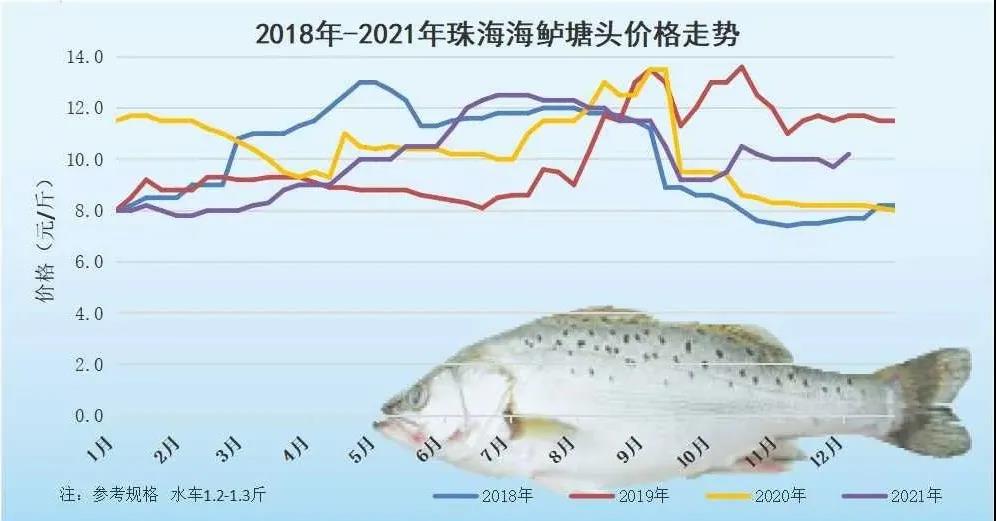 文/圖 水產前沿 陳曉慶 價格走勢 水產前沿網原創報道,本周海鱸水車、冰車價格價格有所上調。水車價格:1.2-1.3斤規格報價10.4元/斤,1.3-1.4斤規格報價10.2元/斤,相比上周上調0.4元/斤。冰車價格:1.2-1.3斤規格報價9.6元/斤,1.3-1.4斤規格報價9.7元/斤,1.4-1.5斤規格報價9.9元/斤,1.5-1.6斤規格報價9.8-10元/斤,1.6-1.7斤規格報價10.3元/斤,2斤上報價11.5元/斤。詔安鱸魚報價10.3元/斤,價格穩定。 剛剛進入十二月份,海鱸漲價的消息便陸陸續續傳來。水車價格本周連續兩次上調,目前1.2-1.3斤規格的海鱸已經達到了10.4元/斤。據了解,現在市場上1.7斤以下規格的海鱸較缺,才到導致了整體價格的上調。一方面足規格的新魚已經在9-11月份陸陸續續賣完,尾批海鱸現在大部分都在6-8兩左右,1.7斤以下的海鱸整體存塘量較少。而中大規格的海鱸目前存塘雖然偏少,但仍能夠滿足市場需求。這周市場剛剛漲價,養殖戶普遍惜售,繼續觀望后市的價格。現階段疫情管控對于市場消費的影響越來越小,也進一步促進了行情的上漲。 投苗方面,目前已經有福建苗車過來,珠海本地零零散散開始投苗,整體量并不大,規格大概在2-4公分左右。因為苗規格更大成活率相對更高,目前養殖戶并不著急放苗,更傾向于在福建標粗到更大規格,即使價格也相對更高。 12月4日塘頭報價