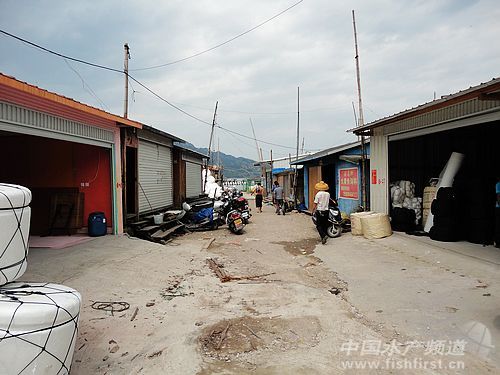 寧德當?shù)刈畲蟮拇簏S魚飼料經(jīng)銷商,大黃魚的整個產(chǎn)業(yè)鏈都有涉及。 遍布海區(qū)的大黃魚養(yǎng)殖網(wǎng)箱,密度之高令人咂舌。 網(wǎng)箱養(yǎng)殖的火熱使得做魚排的生意也好了起來。 寧德這條臨近海區(qū)的短短街道上聚集了至少4-5家大黃魚飼料和漁藥店。 大黃魚不耐運輸,收購后要馬上冰鮮運往市場。