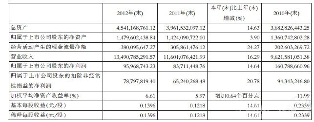 中國水產頻道綜合報道,昨日夜間,通威股份(600438)發布了2012年年報,公司去年實現凈利潤9596.87萬元,同比增長14.64%,擬向全體股東每10股派發現金紅利1元(含稅)。同時發布的相關公告稱,2013年公司將繼續加強公司主營業務的持續擴張、利用短期溢余資金進行理財。 2013年夯實主業 2012年公司實現營業收入134.9億元,同比增長16.29%;歸屬于上市公司股東的凈利潤為9596.87萬元,同比增長14.64%;基本每股收益0.1396元,同比增長14.61%。同時公司擬向全體股東每10股派發現金紅利1元(含稅)。 公司將分紅與擴張主業相結合,在進行現金紅利分配的同時,2013年公司將繼續推動主營業務投資布點速度,通過一系列的新建、合作、租賃等投資行為及強化技術改造投入,加強公司主營業務的持續擴張。 公司2013年預估對外投資及技術改造投入總額為40000萬元,主要用于主營業務飼料制造業的發展。據悉,目前公司90%以上銷售收入來自飼料主業,特別是水產飼料為全球第一,連續多年保持快速增長態勢。公司對主業的投資一刻也沒有放松,從公布的年報可以看出,2012年公司對外投資、技術改造投入就高達38937萬多元。