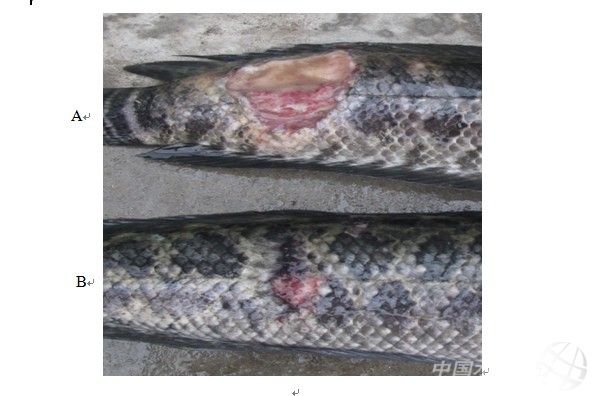 中國水產頻道獨家報道,據悉,順德勒流、杏壇等生魚主養區近期相繼爆發爛身病,且今年發病程度及范圍均甚于2012年,魚價低迷,養殖情況堪憂。 爛身病,即流行性潰瘍綜合癥(Epizootic ulcerative syndrome, EUS),是一種由絲囊霉菌引起,繼發感染嗜水氣單胞菌、溫和氣單胞菌、彈狀病毒等病原,進而引起魚體不同程度潰爛的疾病。該病對淡水及海水魚類危害性極大,具有潛伏期長、發病率高、死亡率高等特點,是一種季節性流行病。近年,已在烏鱧、加州鱸、塘虱魚、雜交鯰、黃顙魚等名特養殖品種發現,其中對烏鱧和加州鱸的危害最為嚴重。2012年水生動物診斷試驗手冊(<Manual of Diagnostic Tests for Aquatic Animals 3月下旬,該團隊受珠海斗門某養殖廠所托,采集患有爛身病的生魚樣本,通過檢測確定其受到絲囊霉菌感染。將部分病魚放入富含生物絮團水體中飼養,15天后發現,生物絮團水體養殖的病魚潰瘍處已基本愈合(圖-B),而對照組(普通淡水養殖)病魚潰瘍仍很嚴重(圖-A)。 該團隊初步推測,應用生物絮團技術或將有助于防治魚類流行性潰瘍綜合癥。目前,已采集第二批病魚,將繼續從生態防治角度開展研究,并進行中試及田間規模試驗。 |