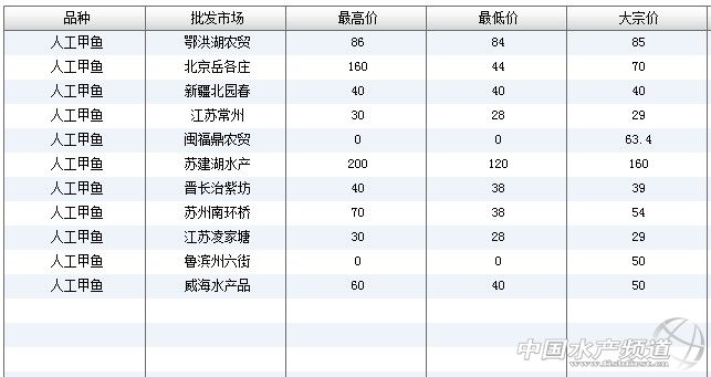 (中國水產頻道水產價格信息共享Q群:245296163,歡迎提供各種水產品一線價格信息!)