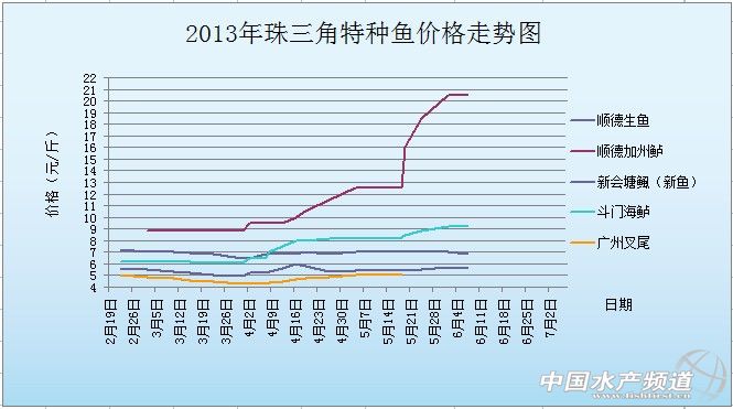 2013年6月1-7日部分地區特種魚塘頭價情況